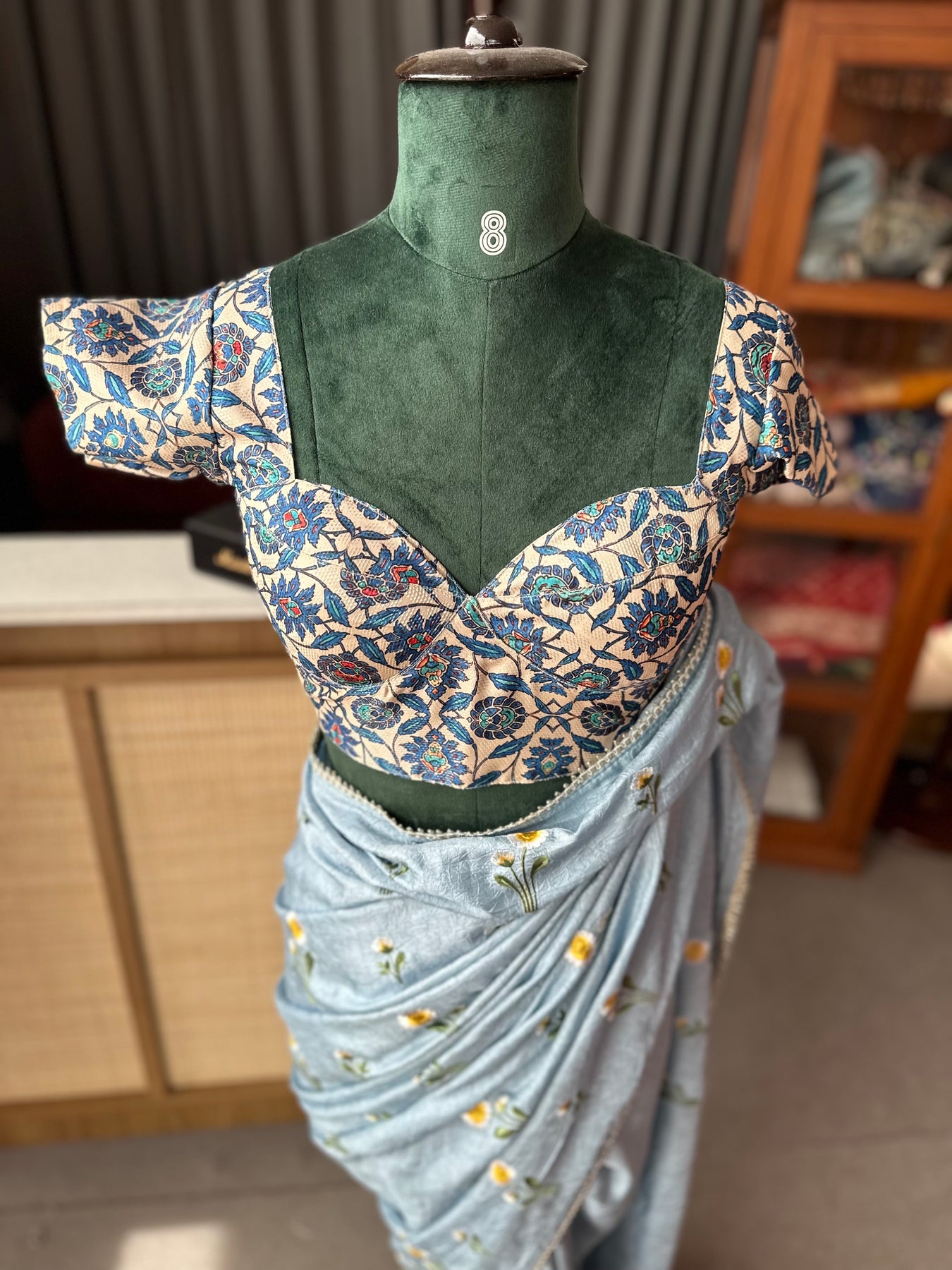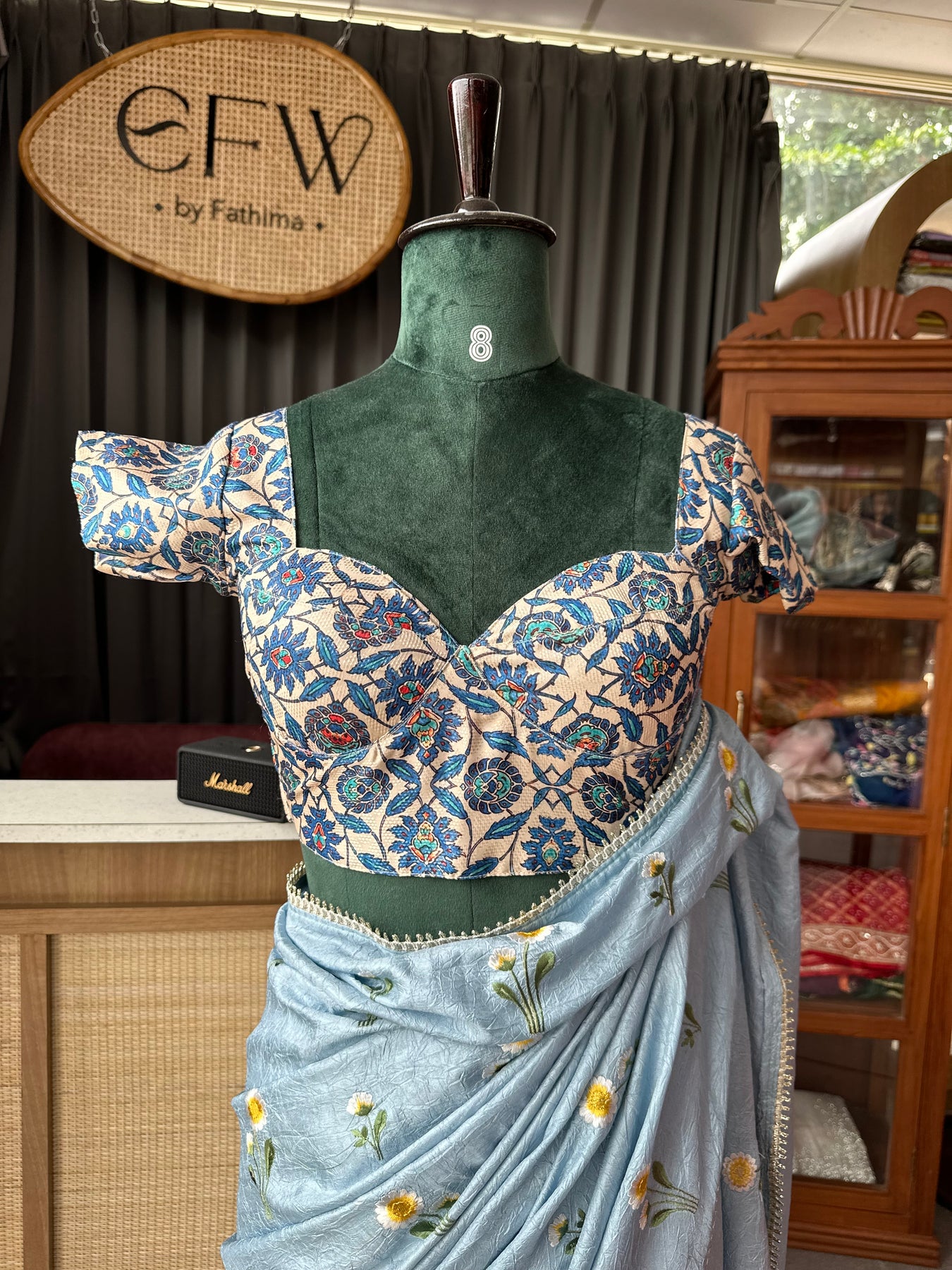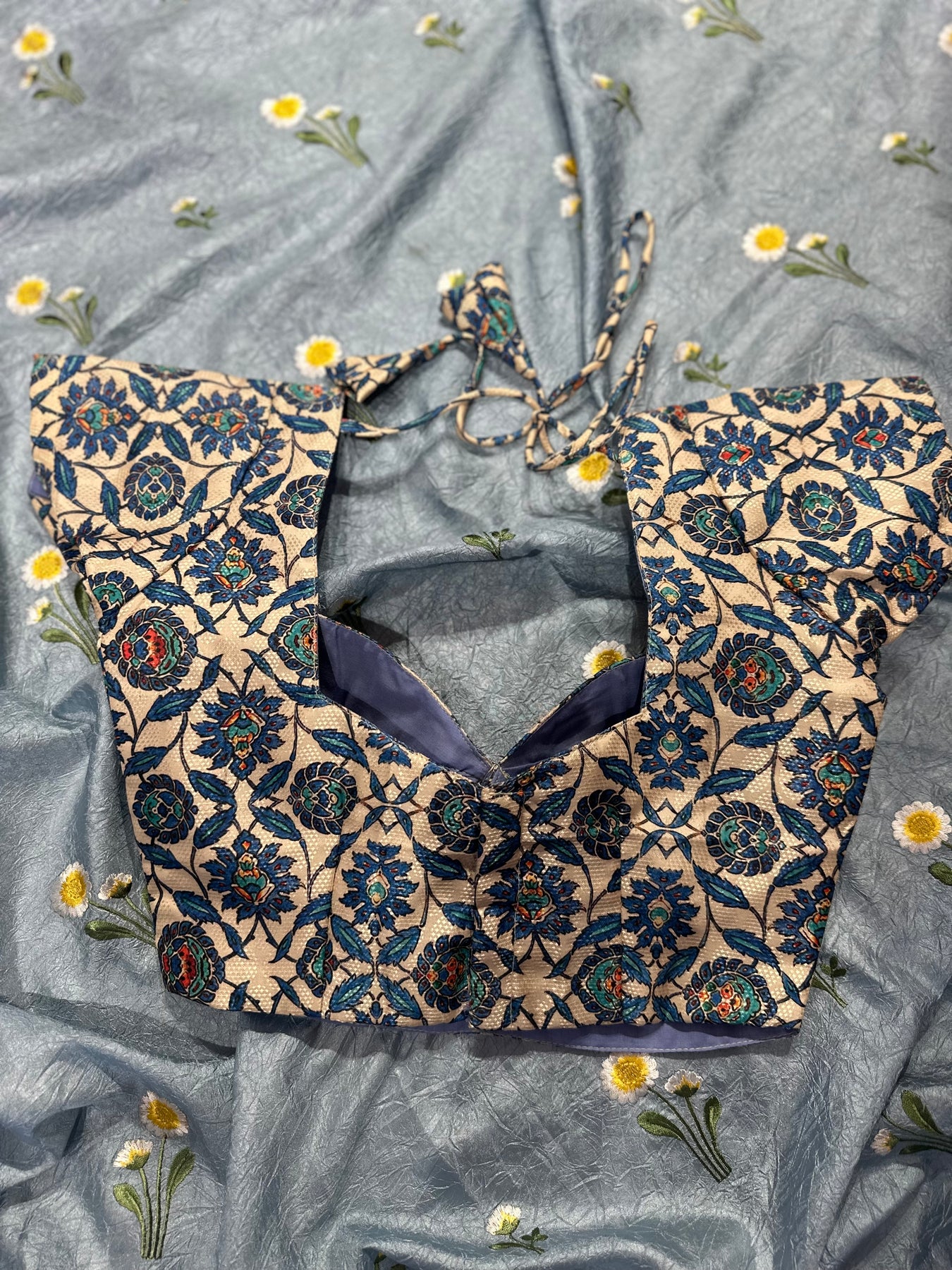 💠 Blouse: Premium cotton silk with floral print — stitched to perfection