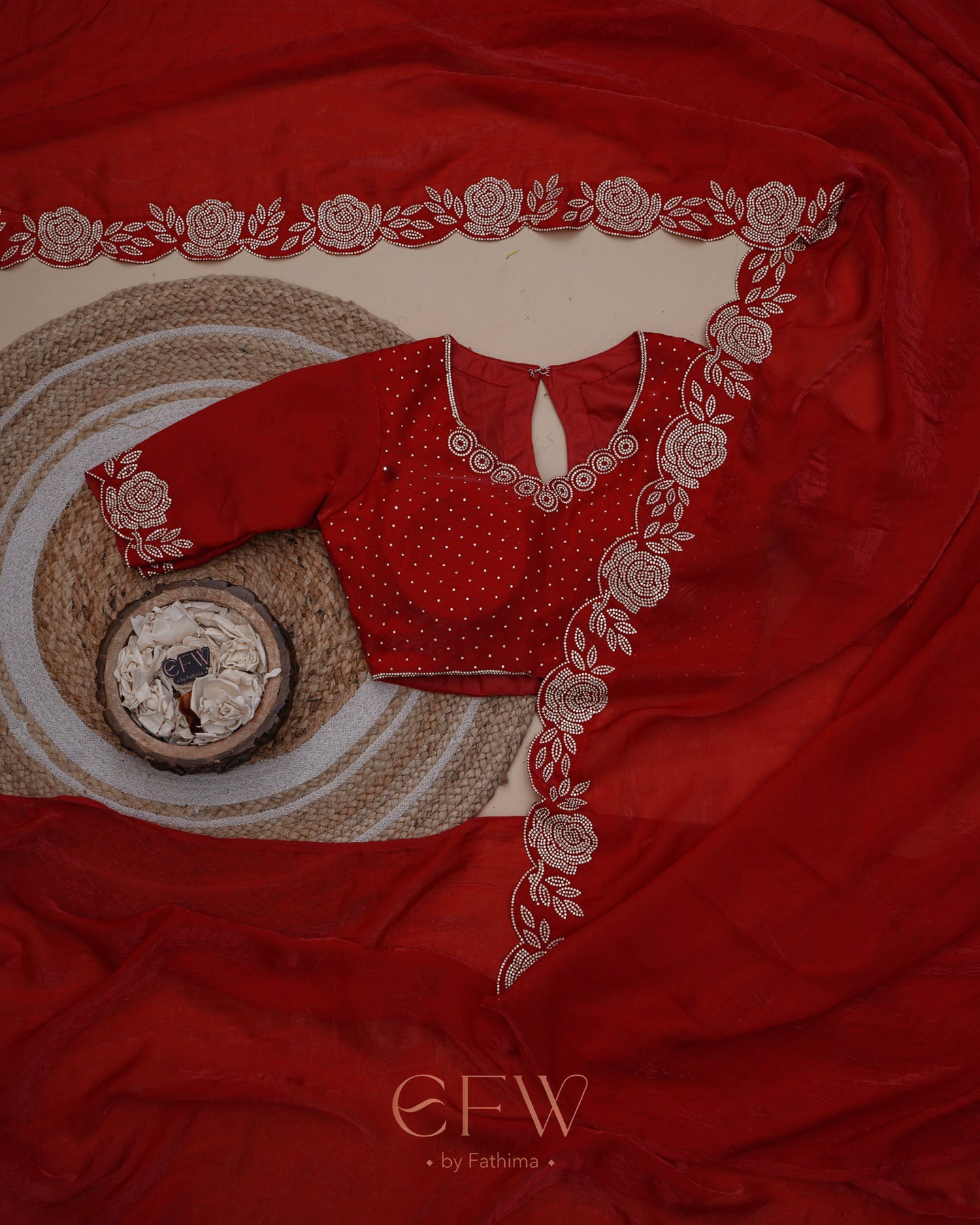 A saree that defines grace with glamour — bold, feminine, and timeless.