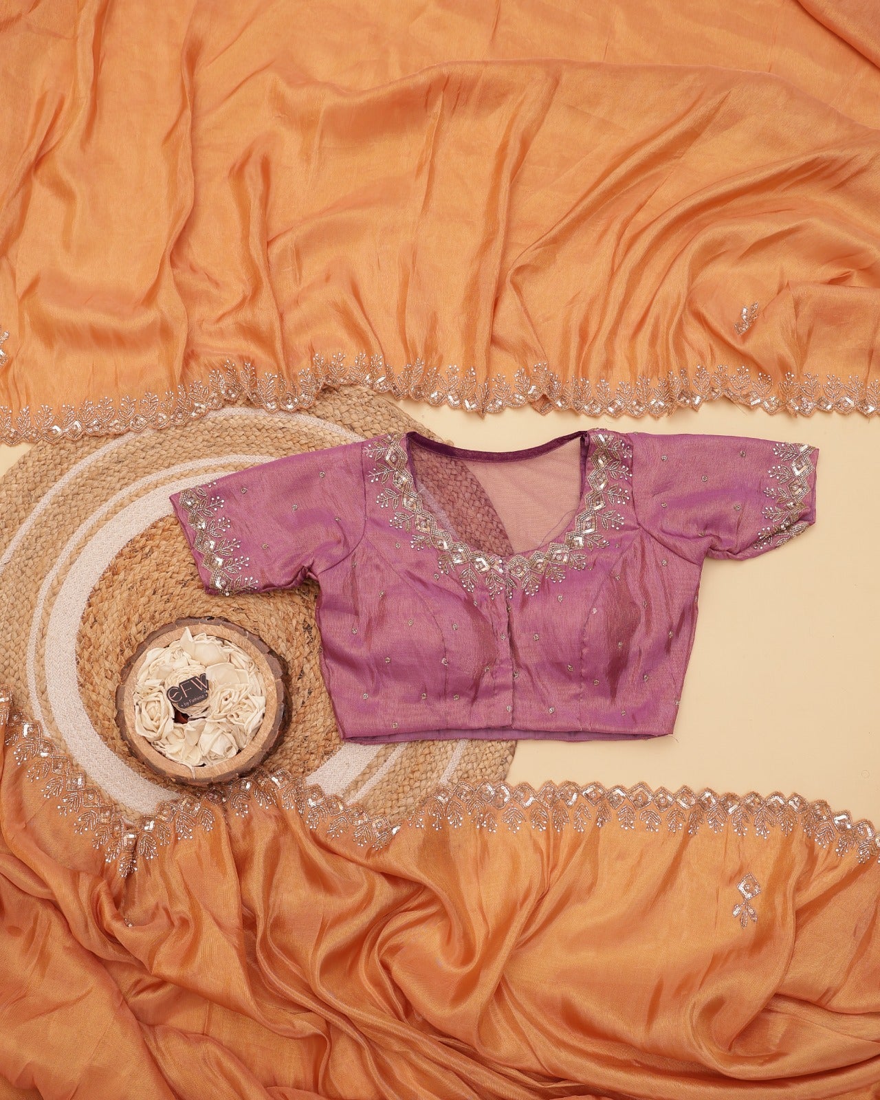 Premium handwork sarees are the real deal! Just look at this beauty—a dreamy off white adorned with stunning handwork that screams elegance! ✨ And that customized blouse? Simple, chic, and oh-so-classy!