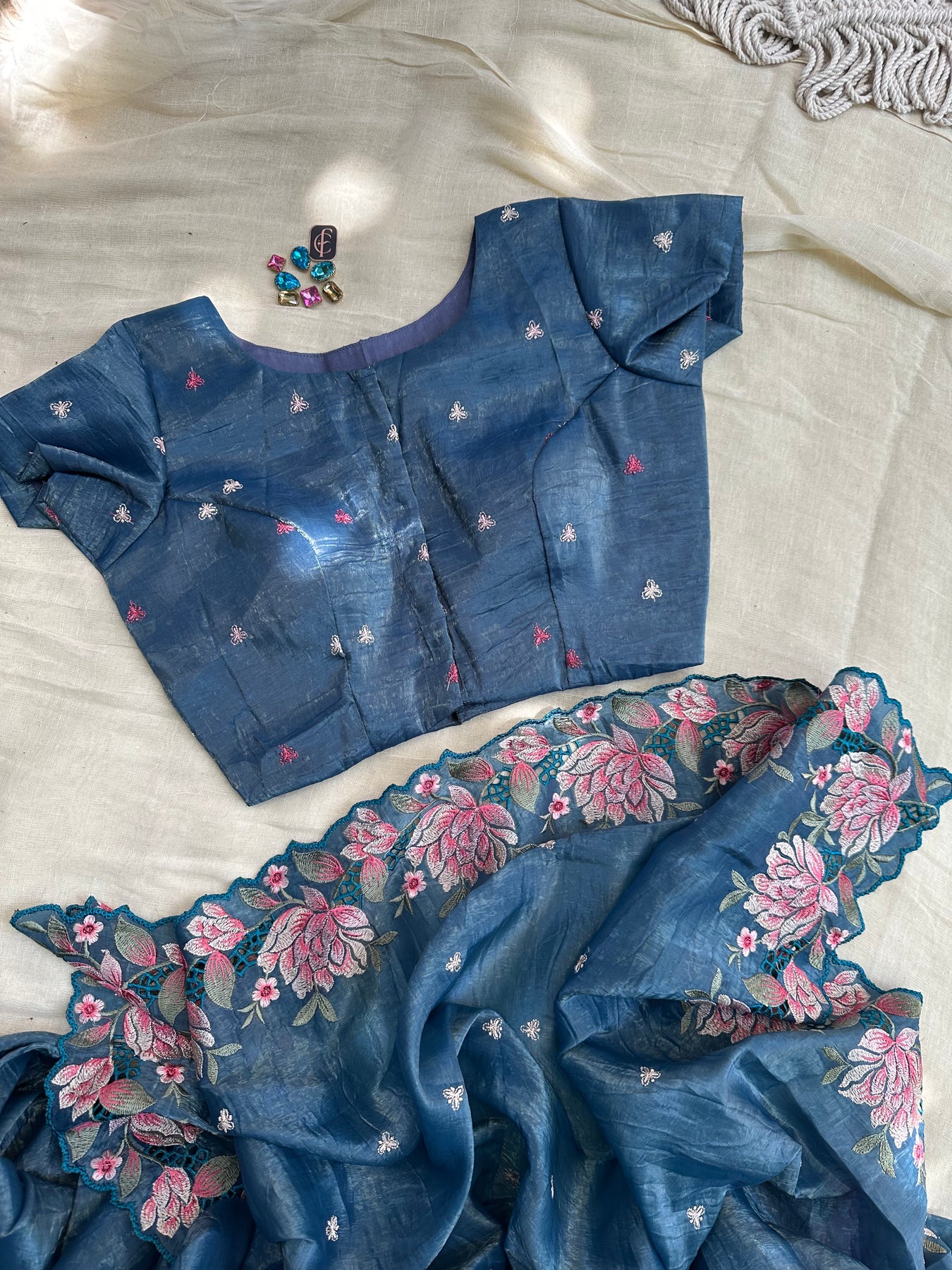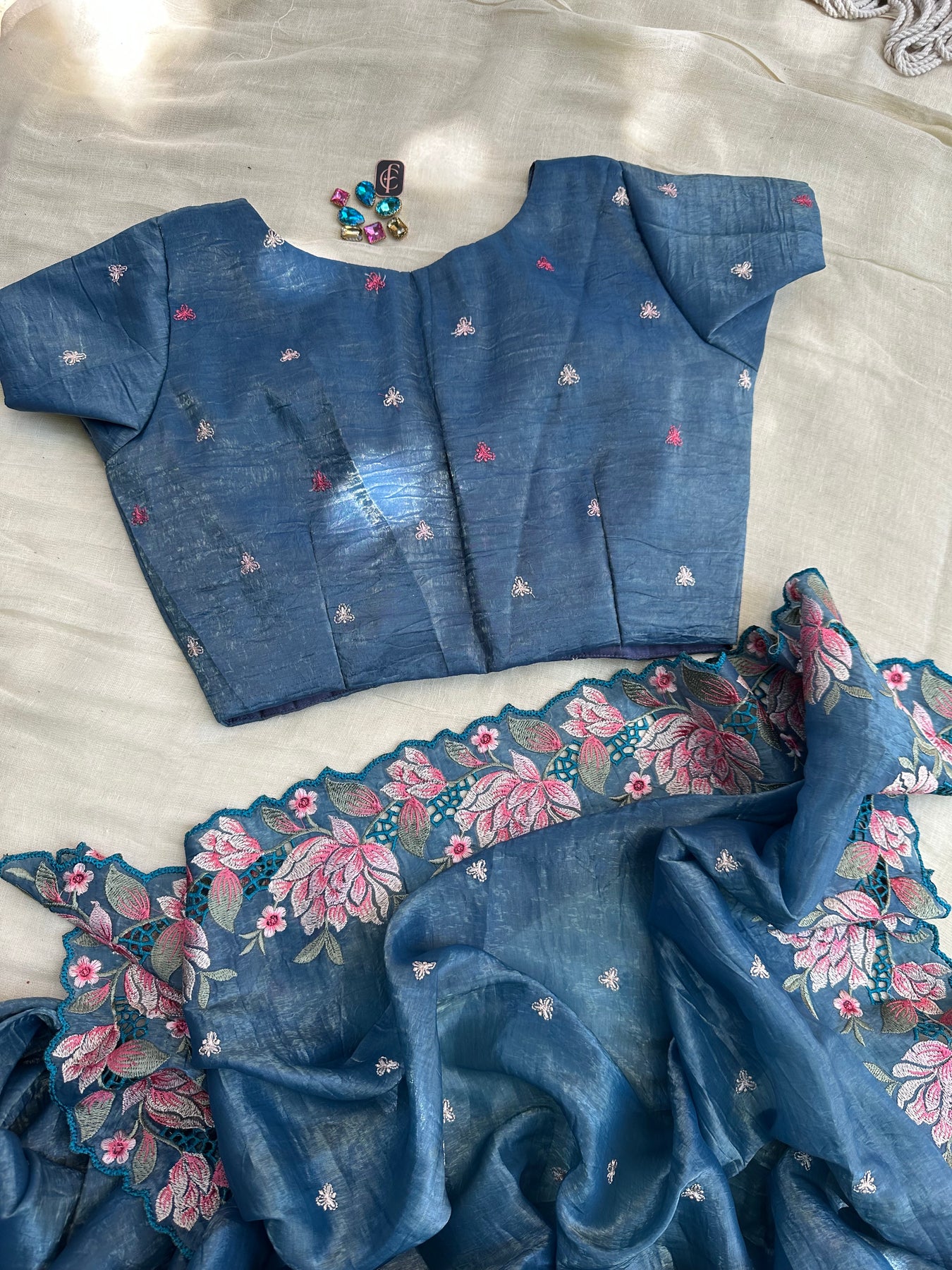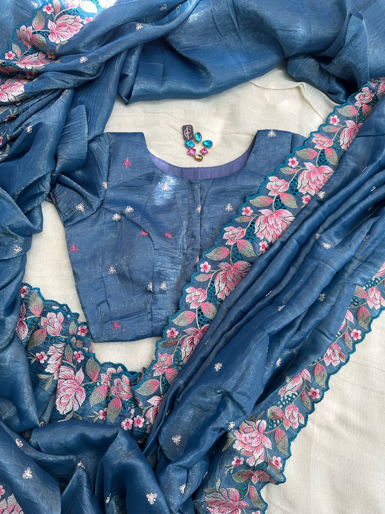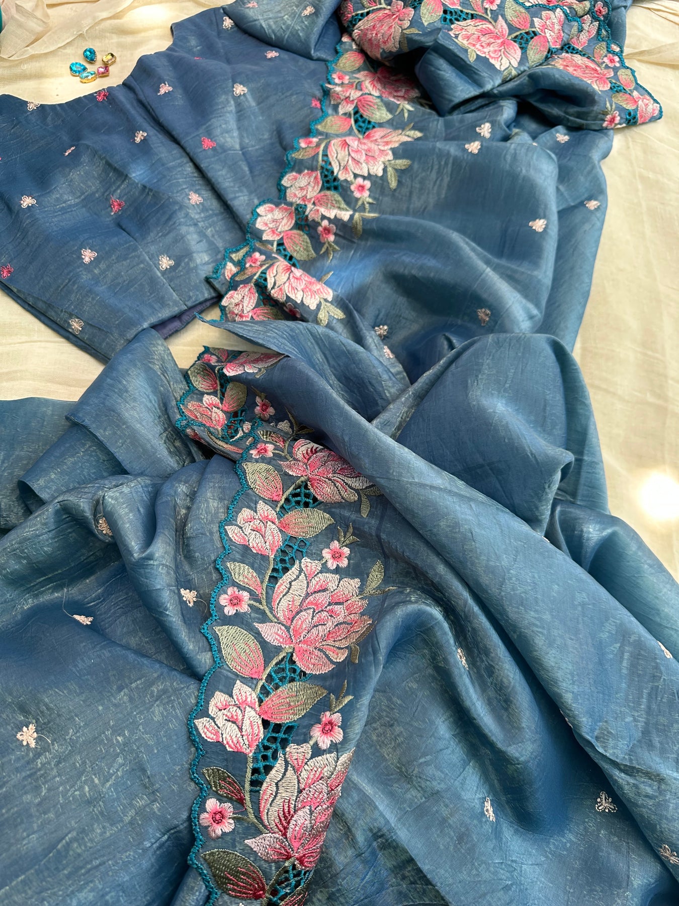 Calling all soft saree lovers! Don't miss this chance to stand out! Our exquisite crushed georgette silk saree with exquisite embroidery work