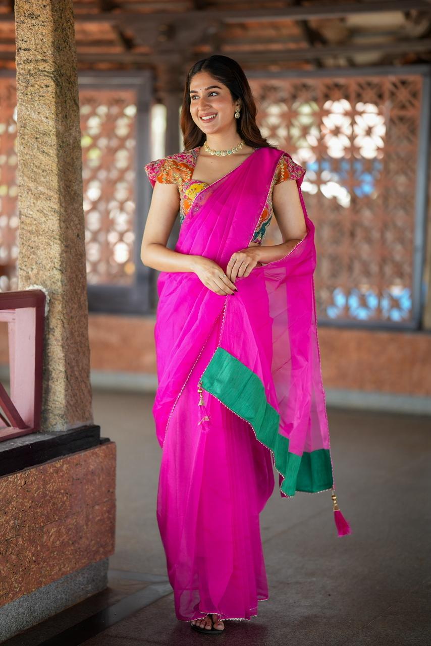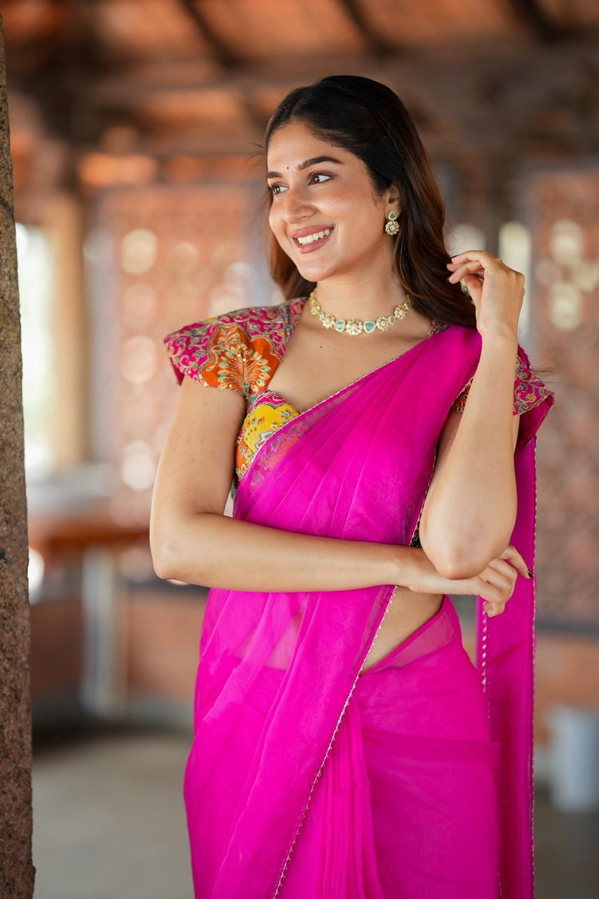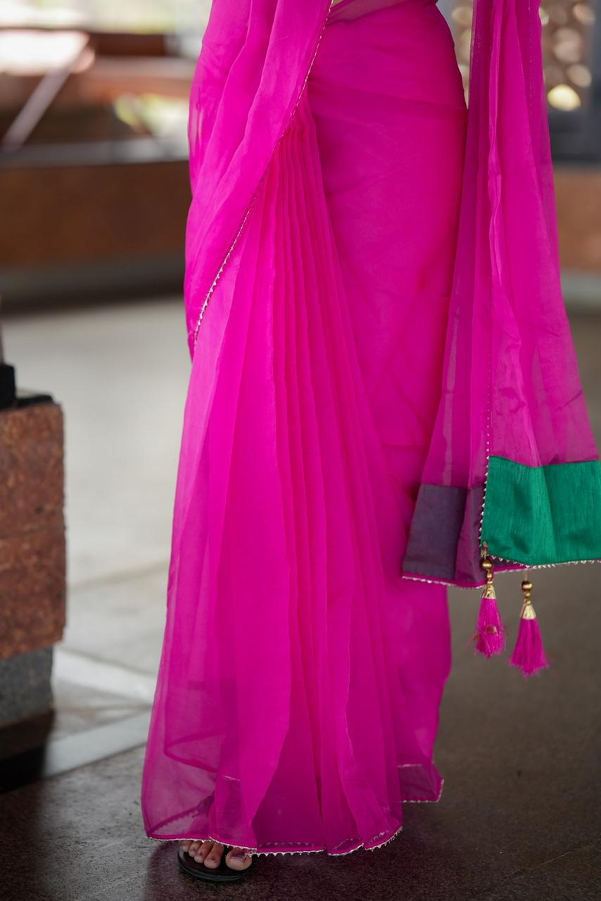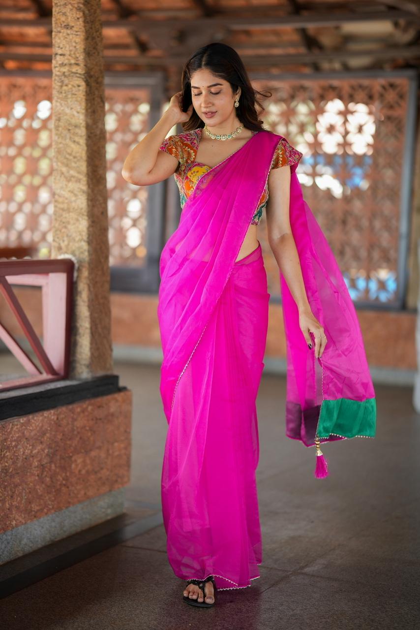 Grand, vibrant, and exquisitely detailed, Hazeera Royal Luxe is designed for moments that call for pure celebration. The saree features a striking drape in rich pink creating a bold yet elegant contrast that instantly elevates your presence.