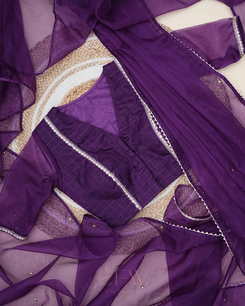 The deep purple shade is the star — luxurious, flattering, and perfect for any festive or evening occasion. It’s that “I look expensive today” outfit, without even trying.