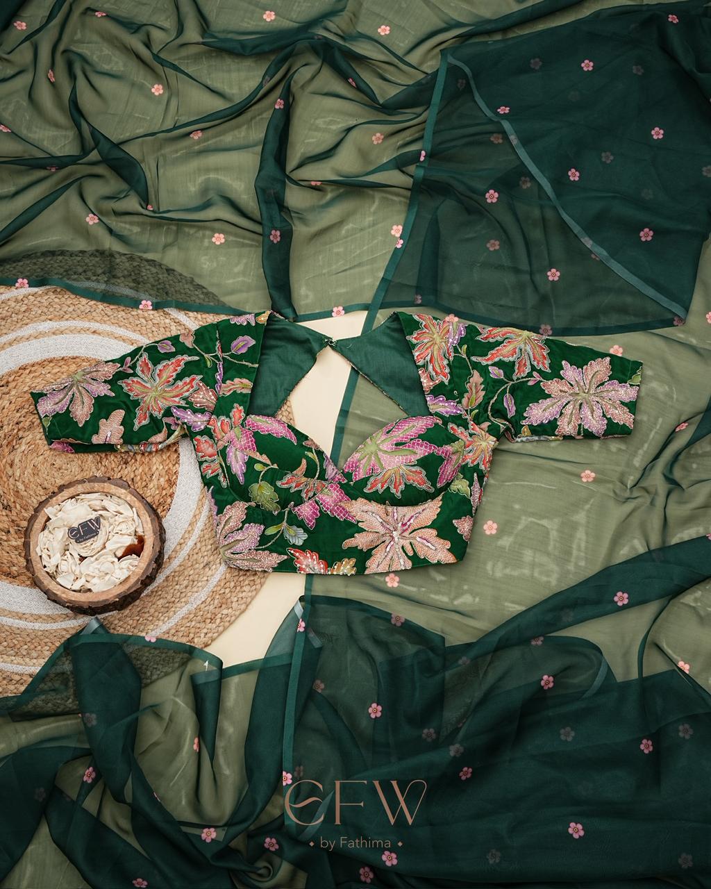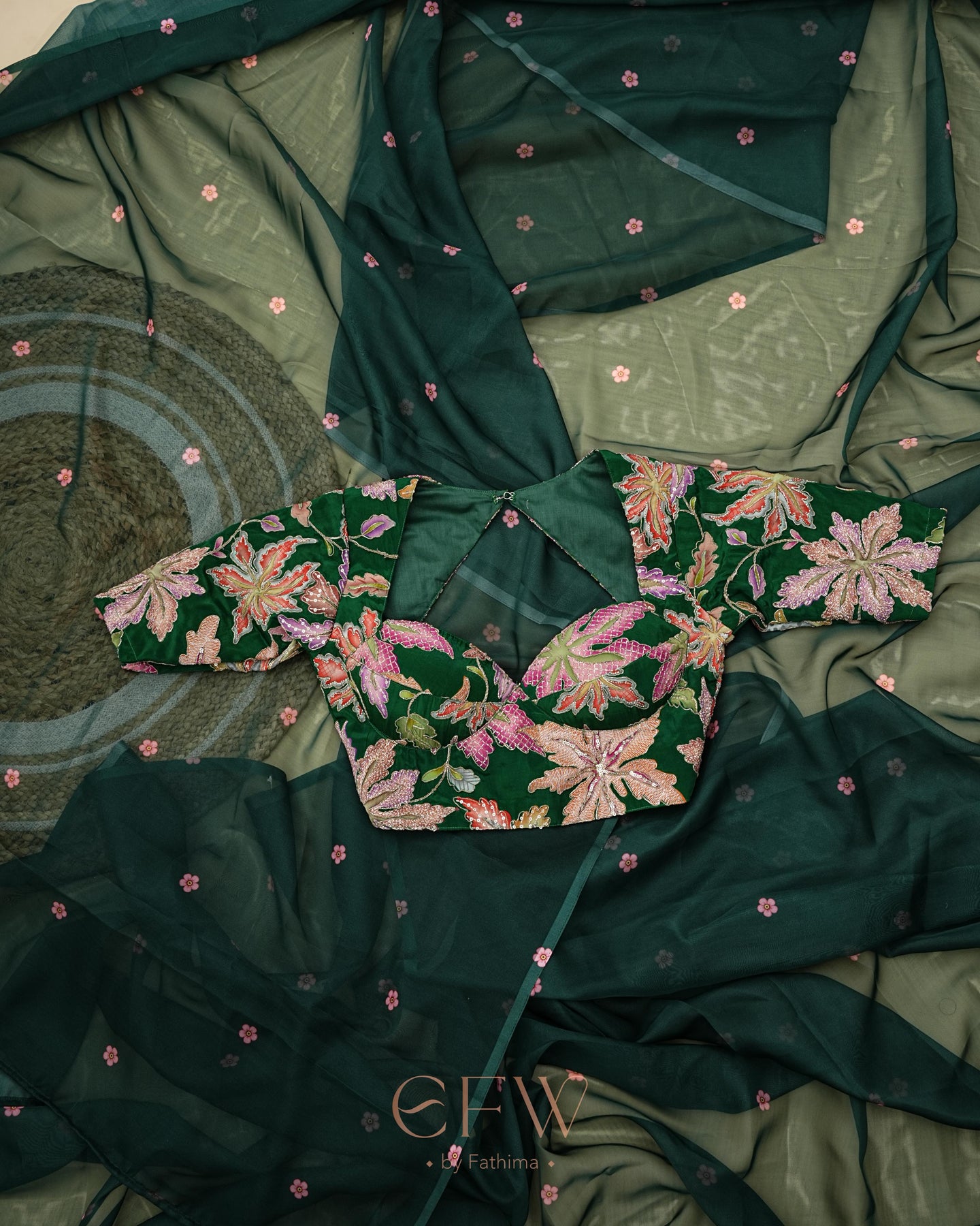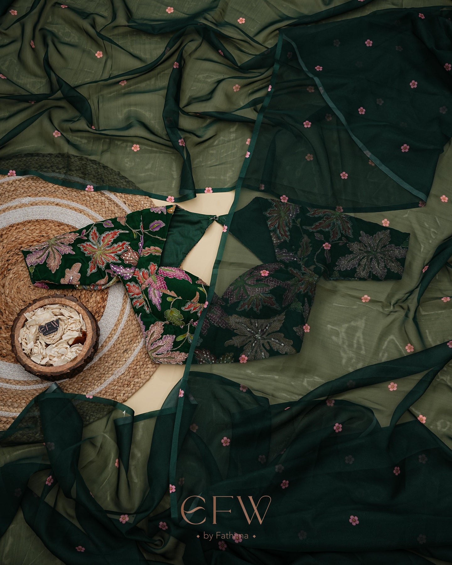 Blouse: Embroidered Silk (Unstitched / Custom Stitch Option Available)