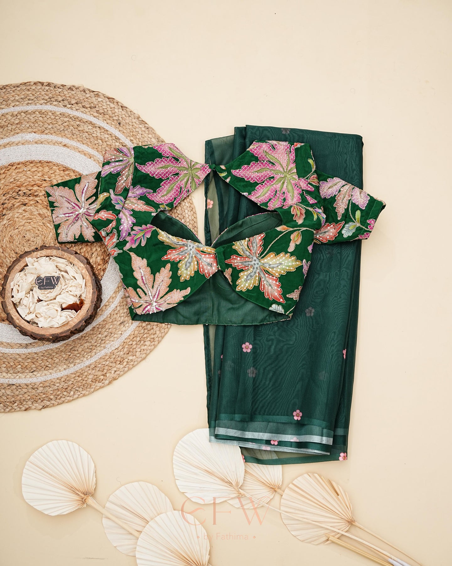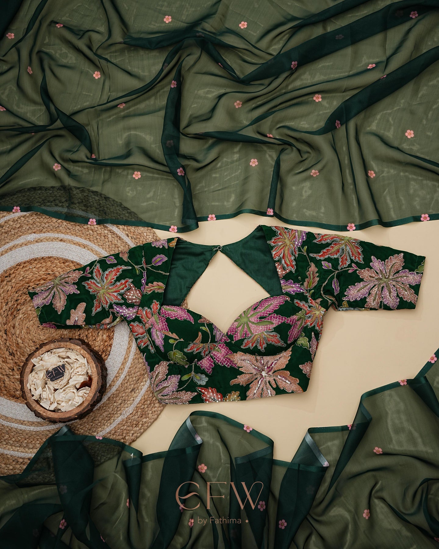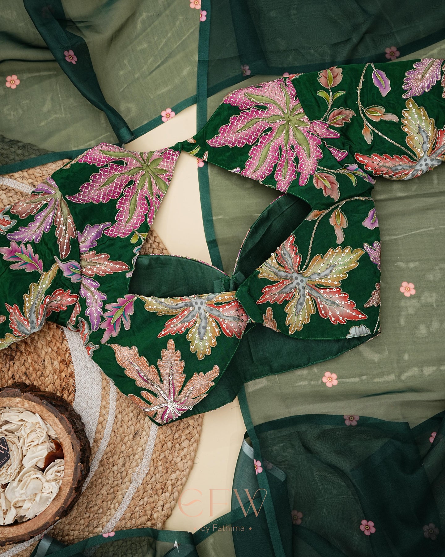 Blouse: Embroidered Silk (Unstitched / Custom Stitch Option Available)