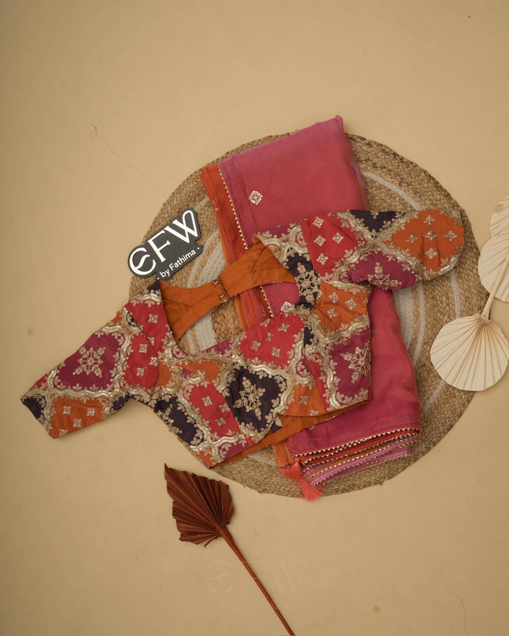 Designed with beautiful patterns and intricate detailing, it perfectly complements the saree and elevates the entire look — feminine, elegant, and effortlessly chic.