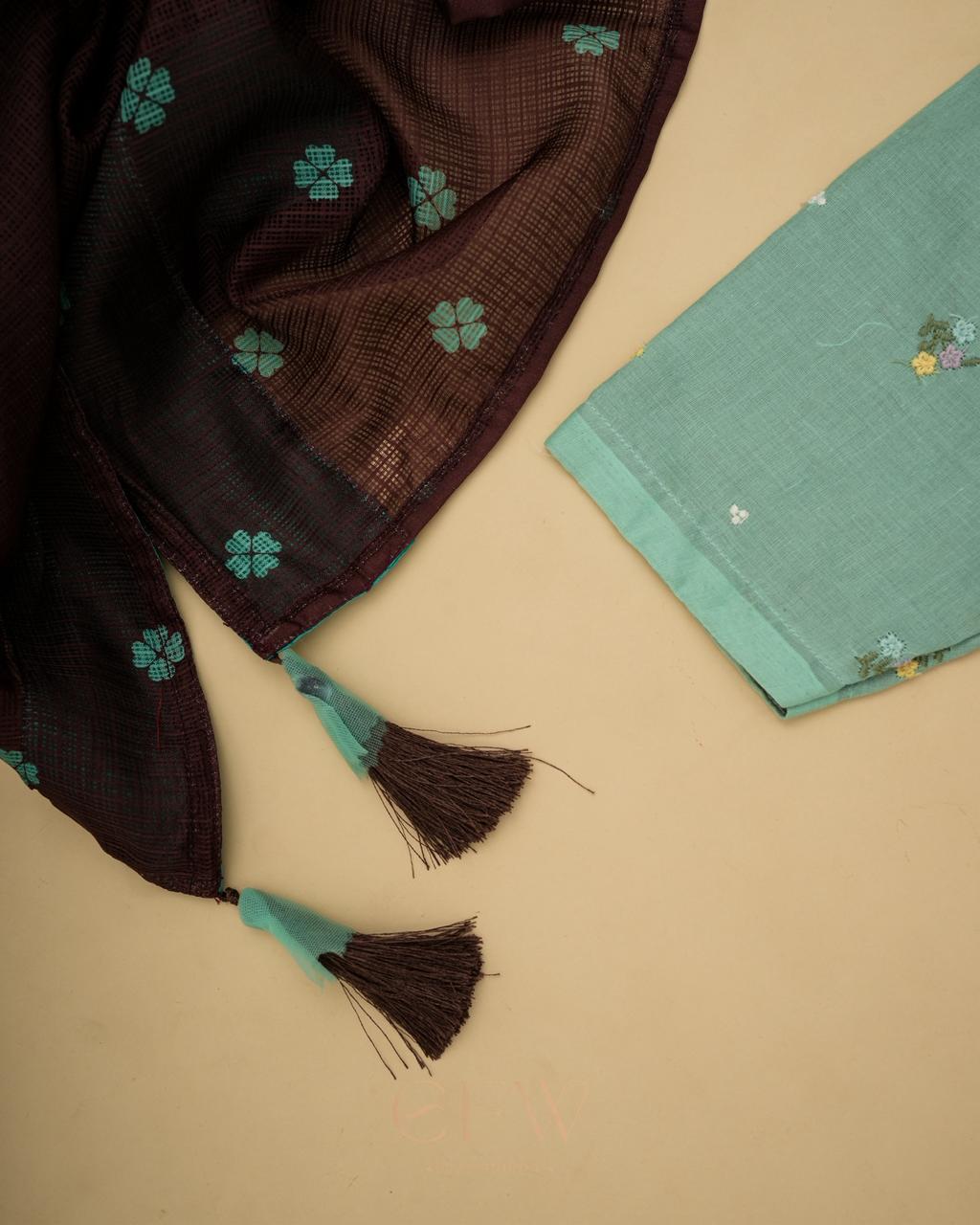 - Saree: Brown Kota fabric with airy weave & delicate motifs