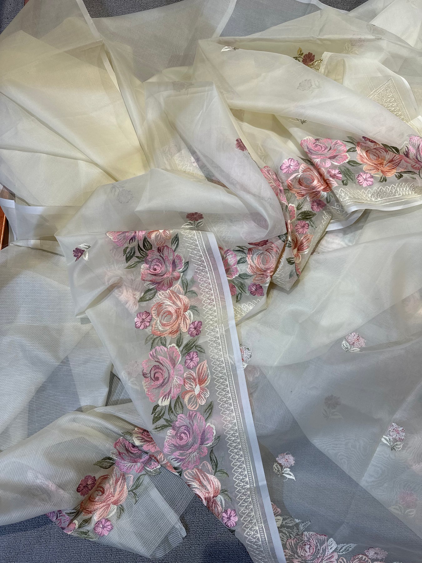 • Saree: Premium blended chandheri organza fabric with intricate embroidery