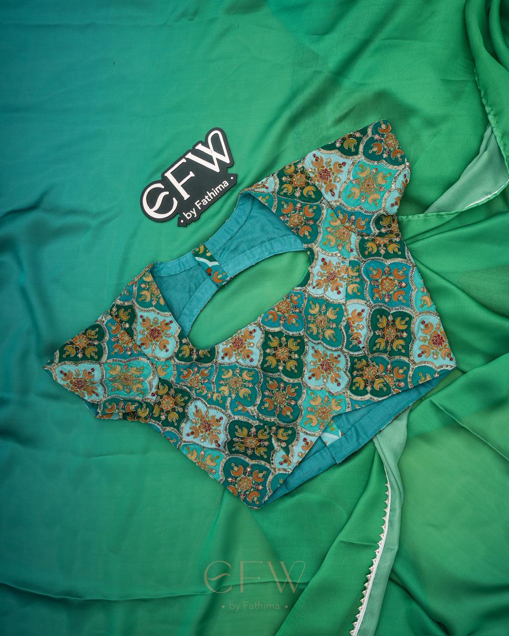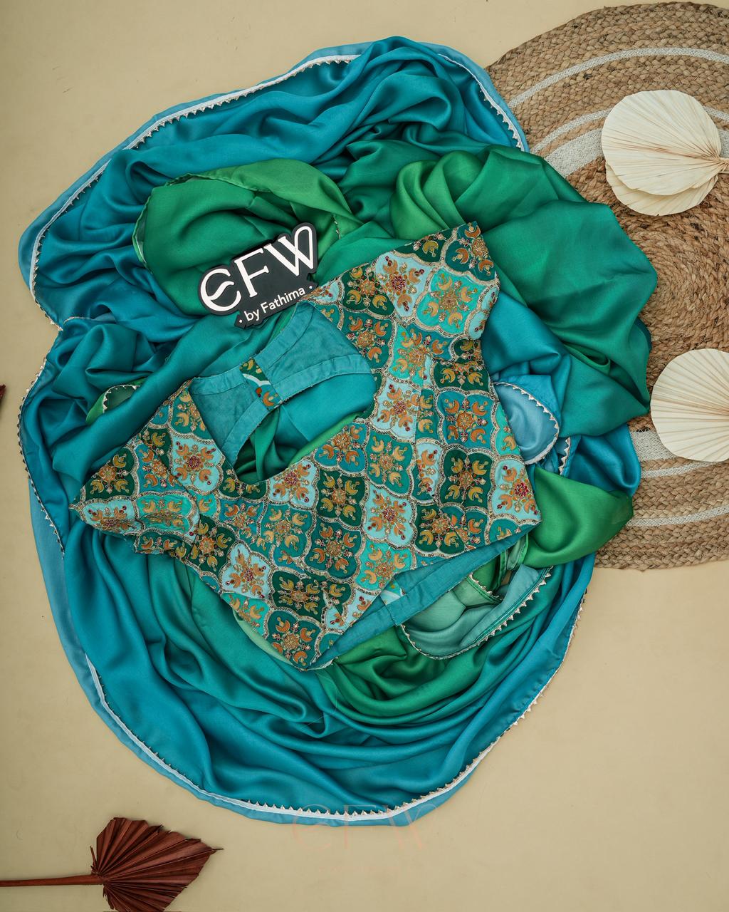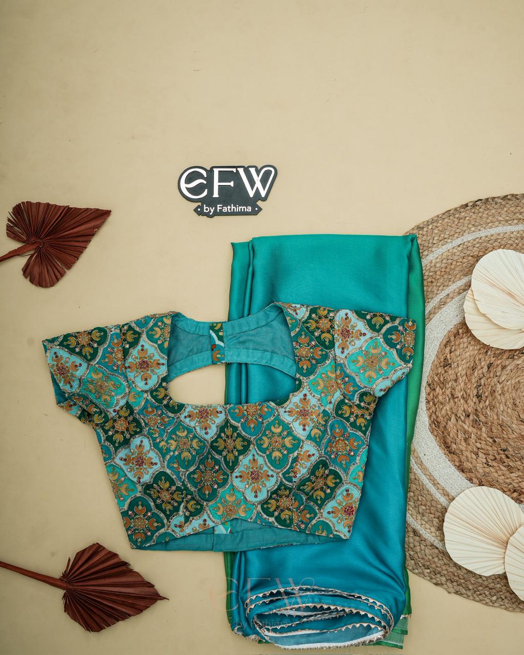 Emerald Aura — Satin Crepe Saree with Designer Blouse