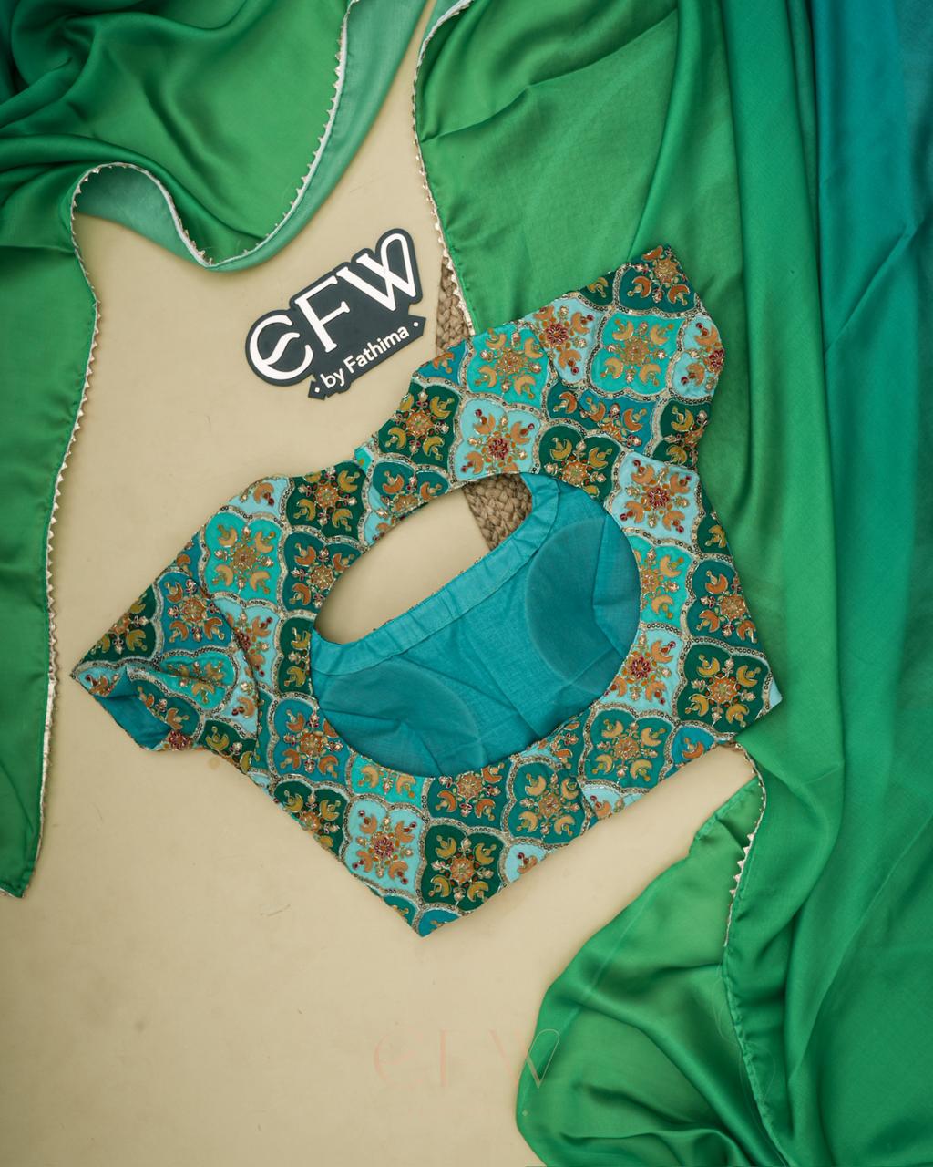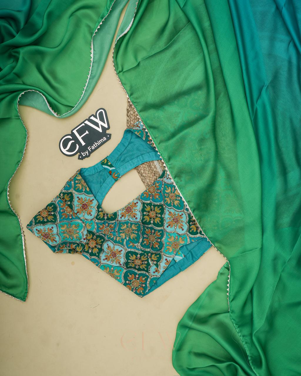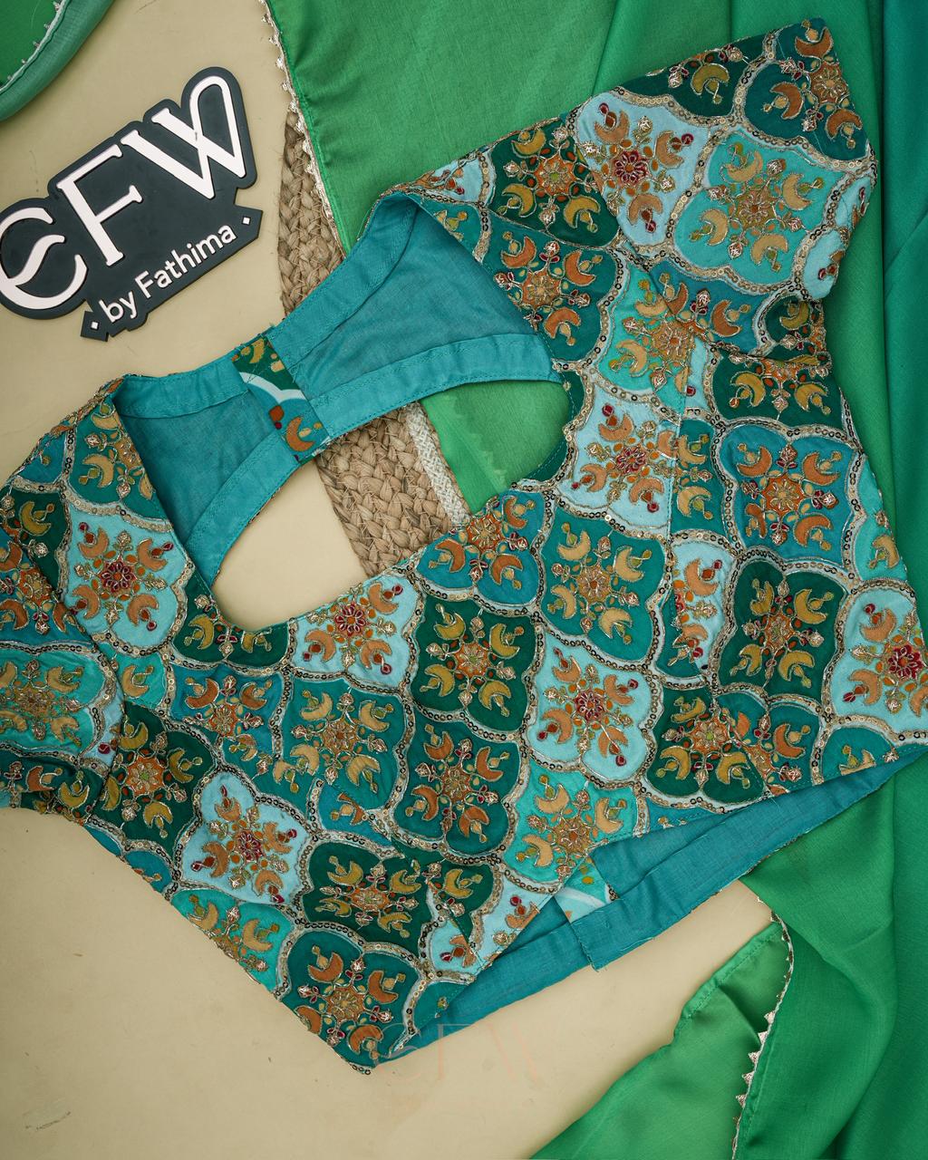 Emerald Aura — Satin Crepe Saree with Designer Blouse