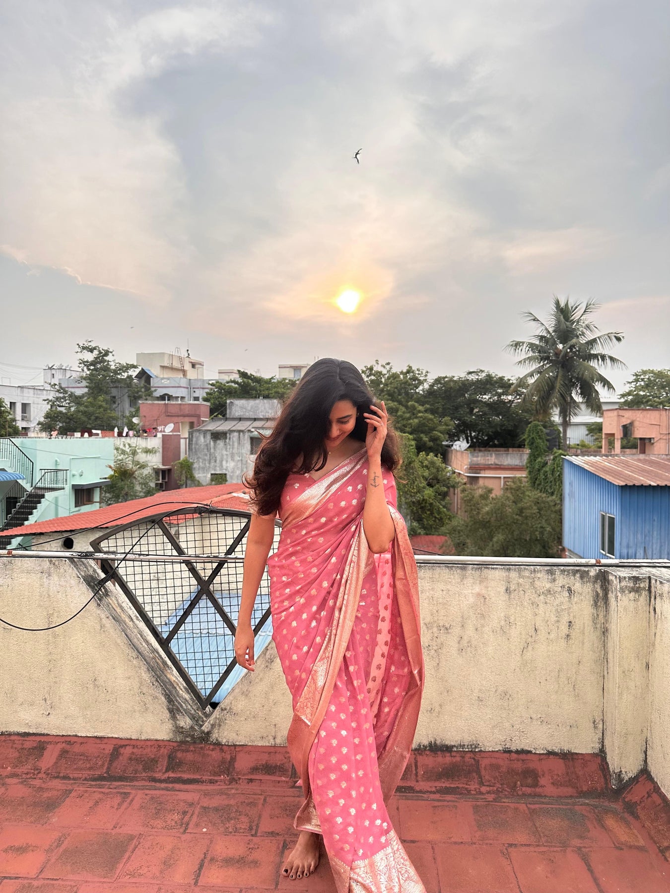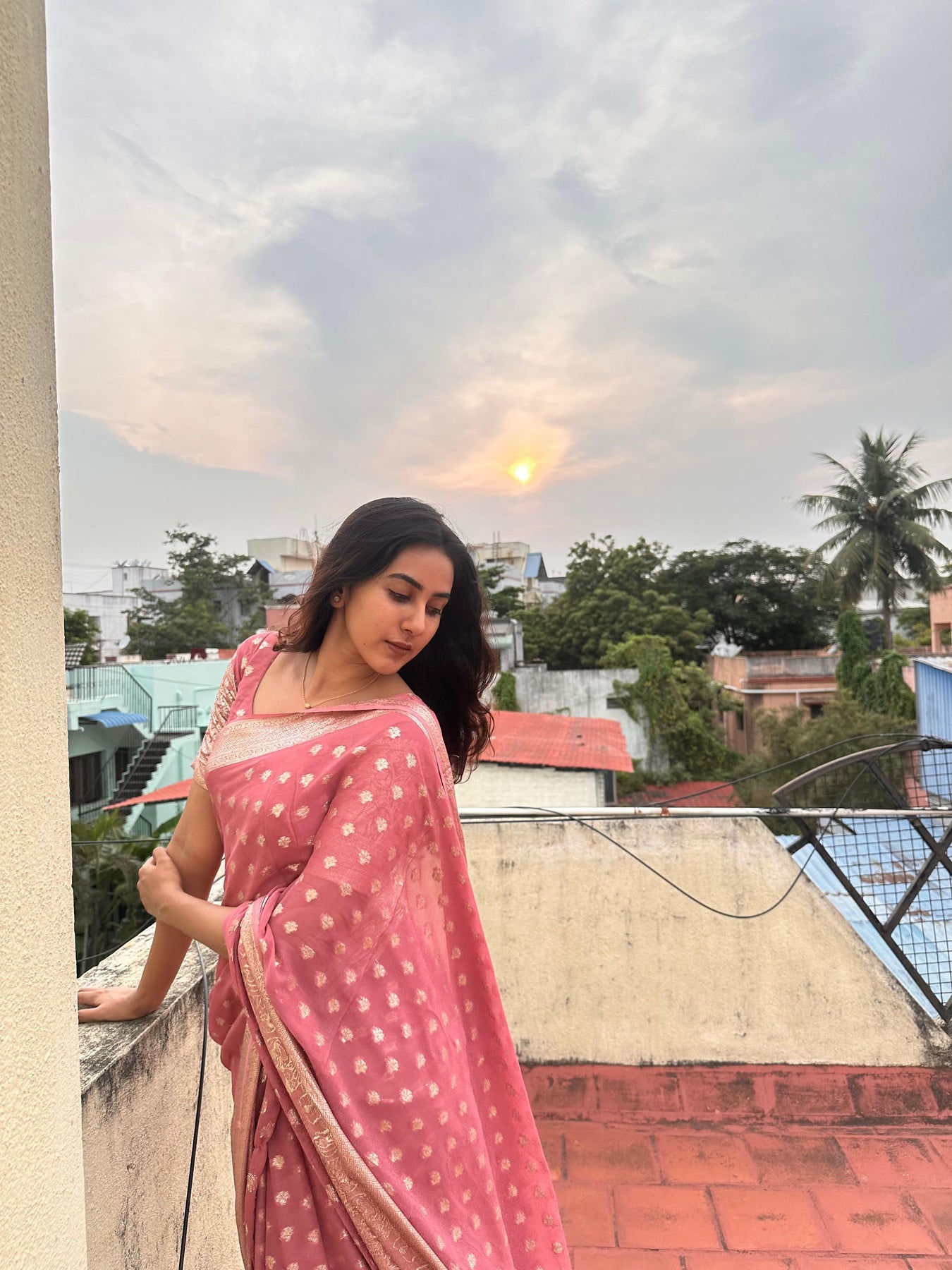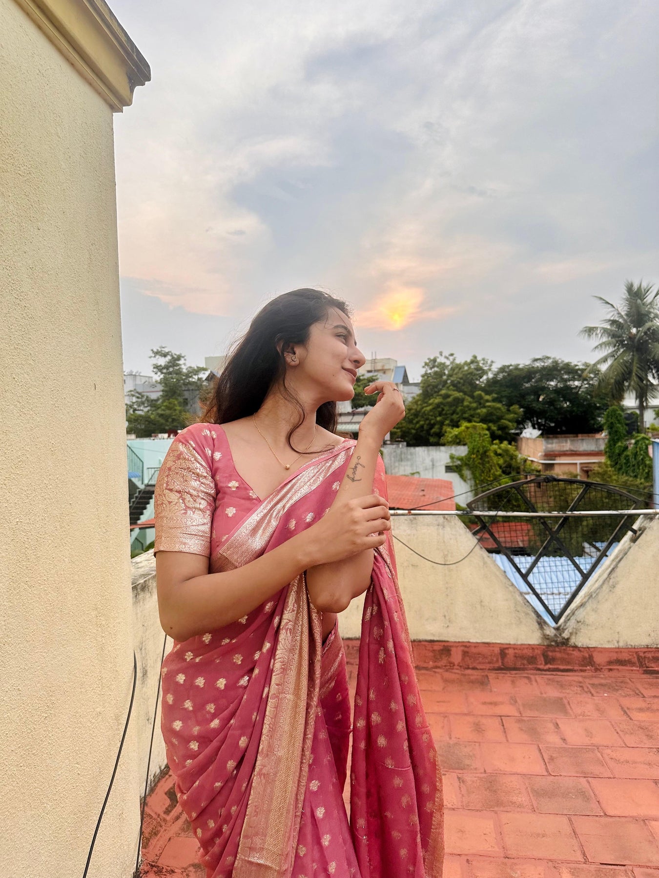 Picture perfect for events! This ethereal cream peach viscose georgette saree with a stunning peach blouse is a must-have for your celebrations. The luxurious fabric and vibrant color will make you shine.