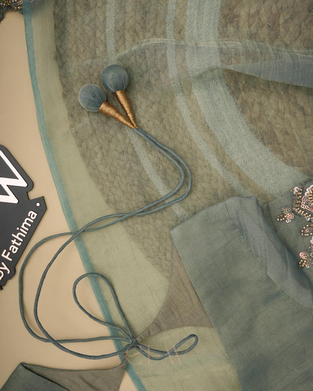 Ready to steal the spotlight? This gorgeous rose gold pure tissue dual tone silk saree in a fabulous golden pink shade is the ultimate showstopper! it’s got all the drama you need to slay the day. Paired with a same tissue silk with the sequins and embroidered work with the running blouse because why not go extra, righ?