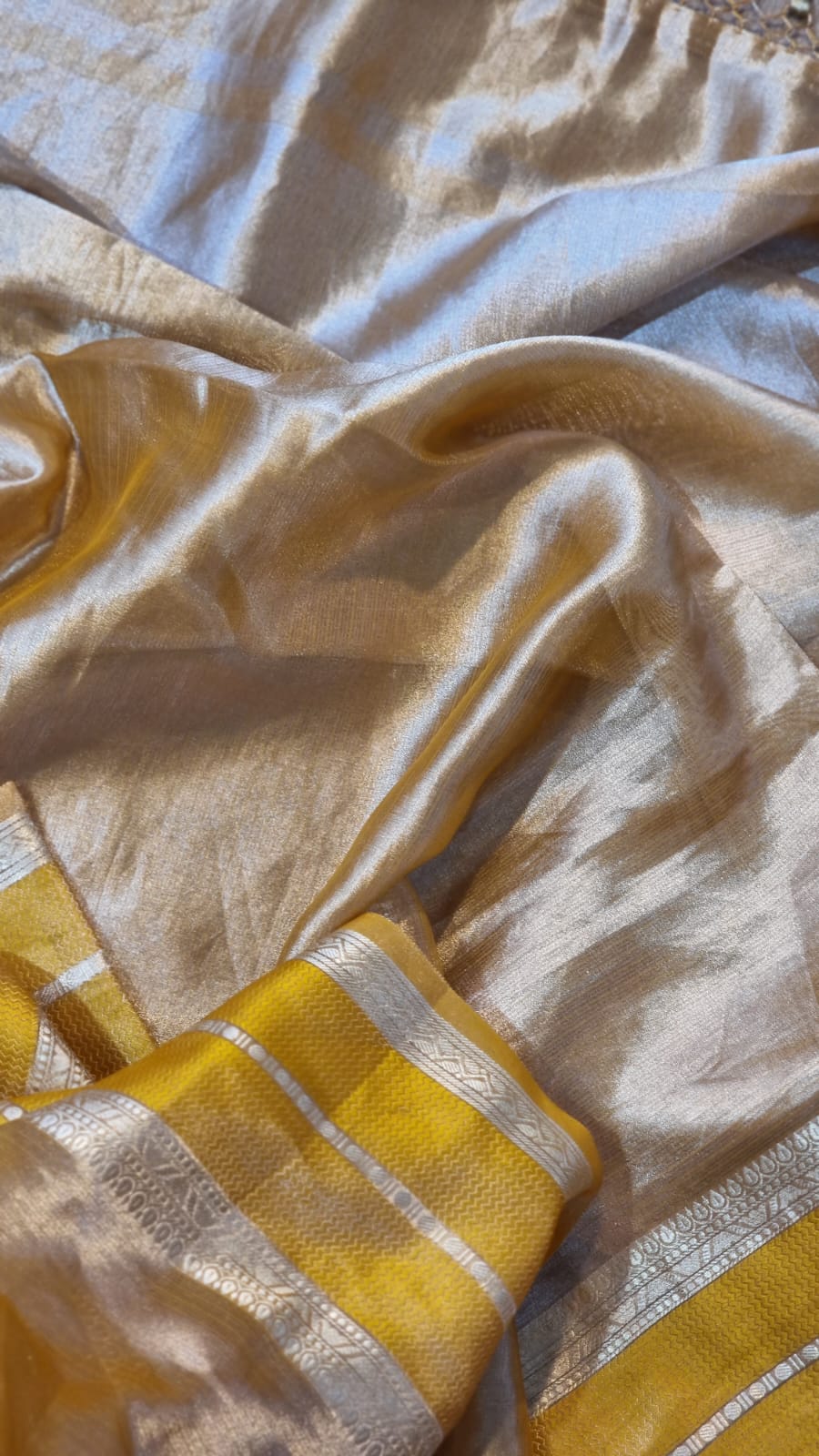 Exude elegance and sophistication in our THANGAMAGAL saree. Made from pure organza double tissue, it features a stunning katan silk border and a blouse adorned with special tassels. With a perfect blend of tradition and modernity, this saree will make you stand out with its golden beauty.