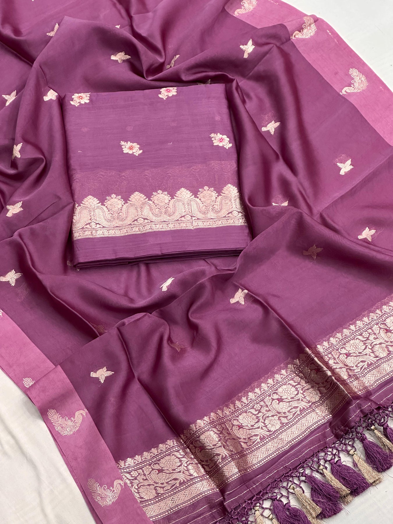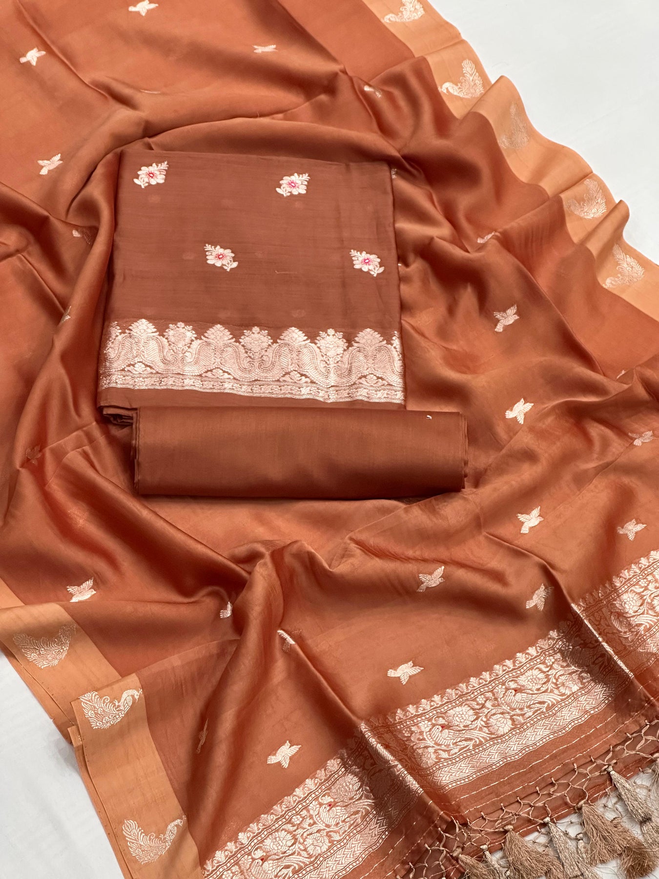 ••PURE BANARASI MUL MUL COTTON KADHWA MEENADAR SUITS(2.50mtrs)*