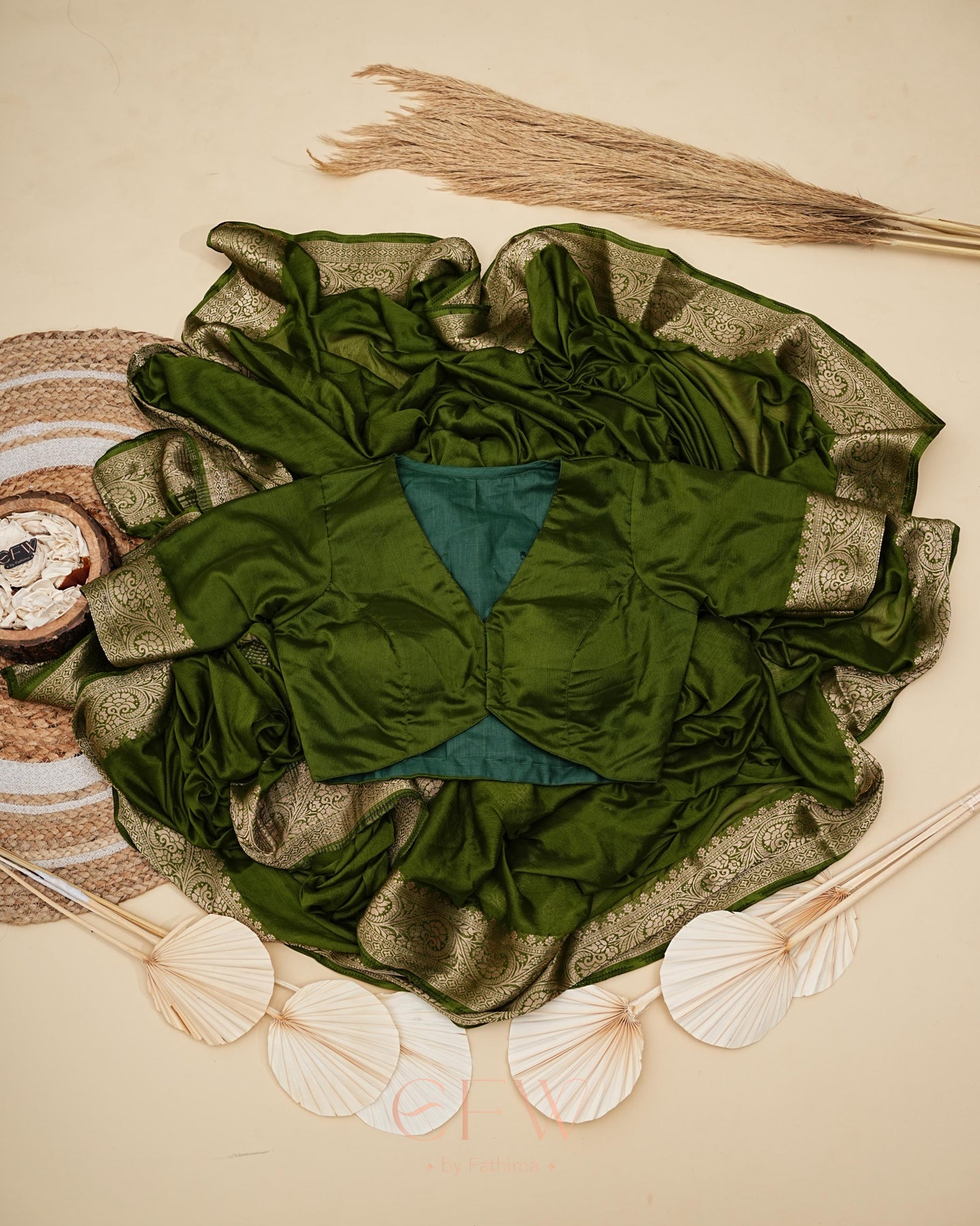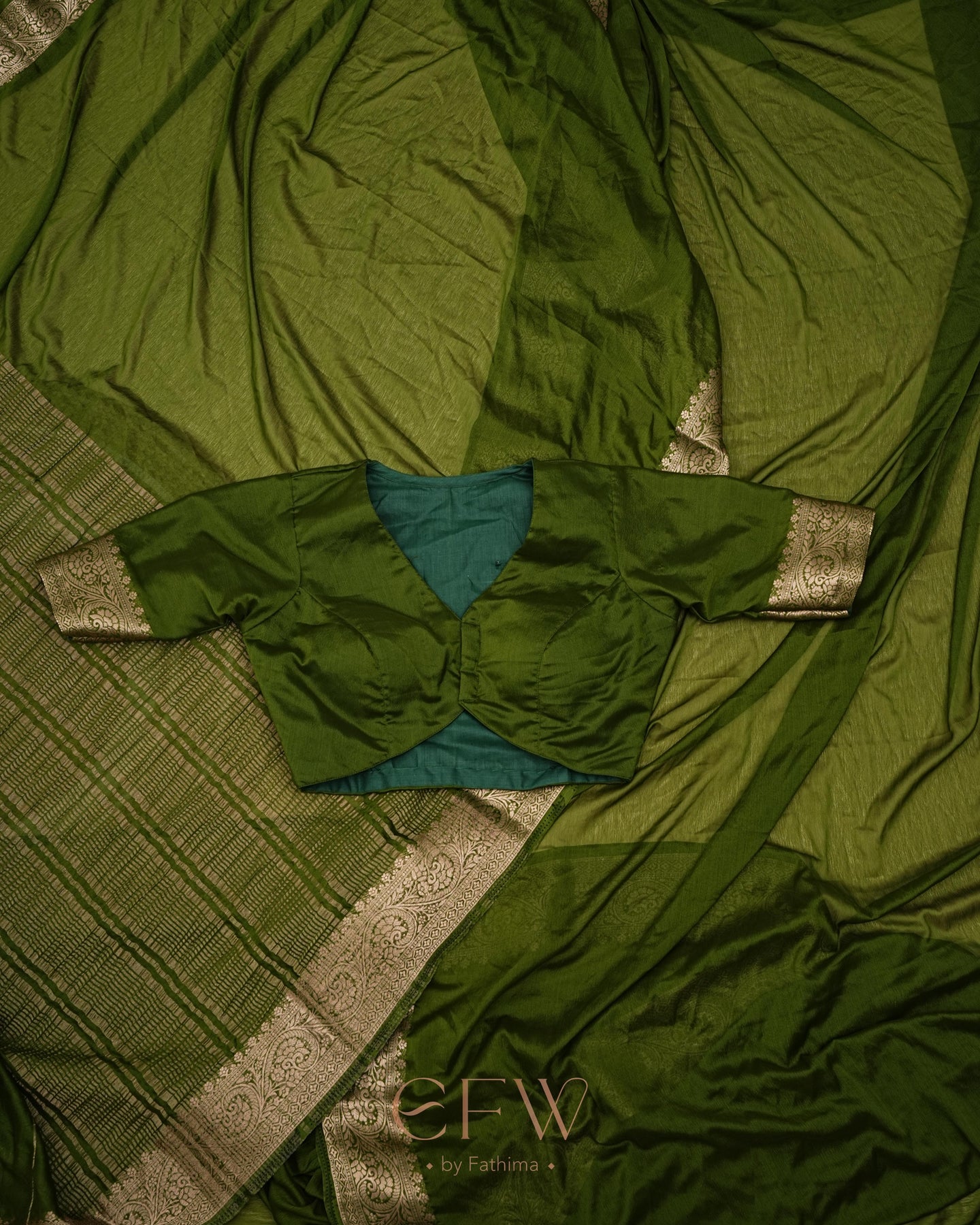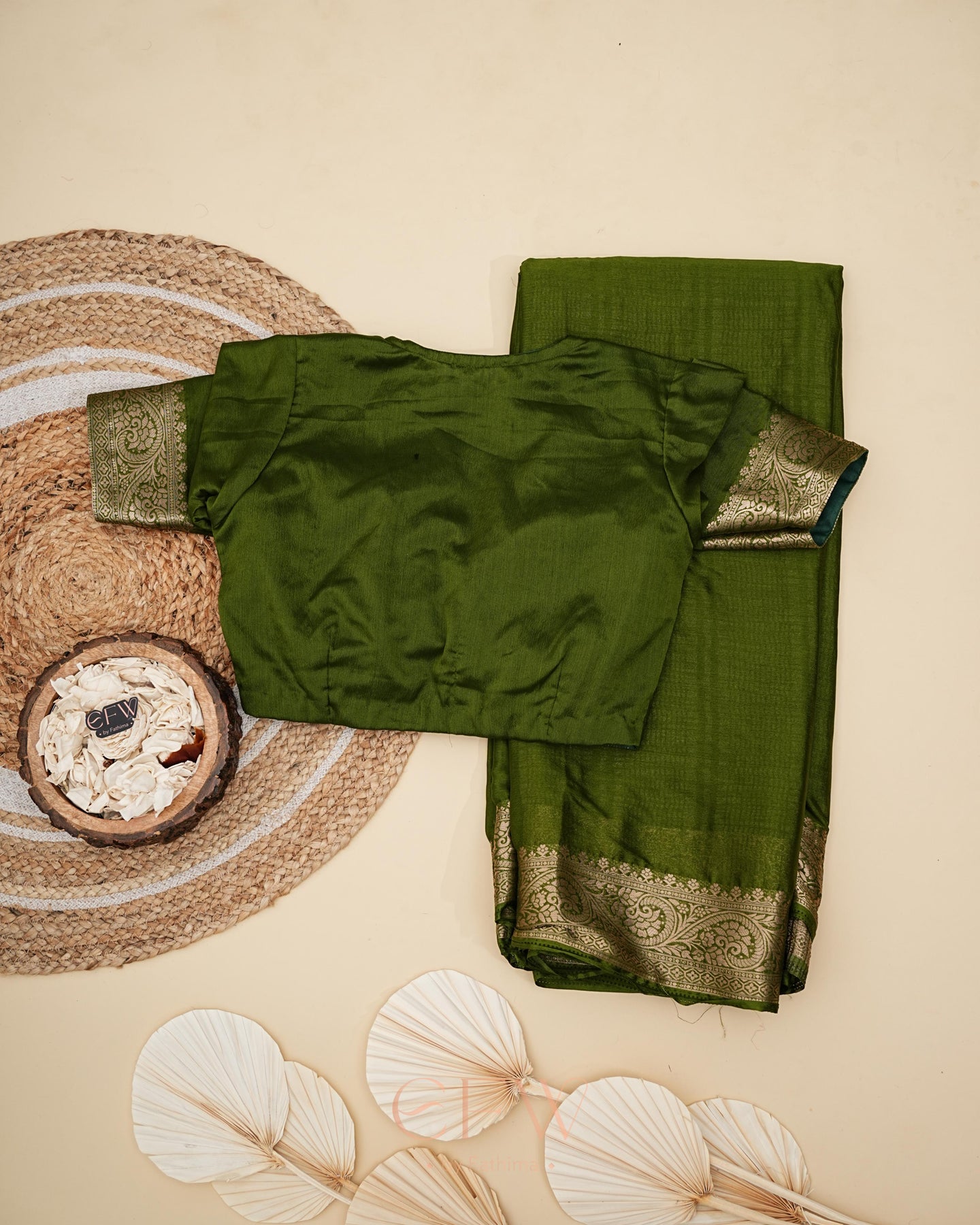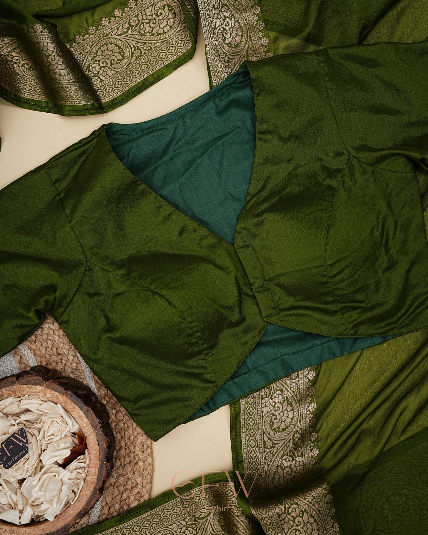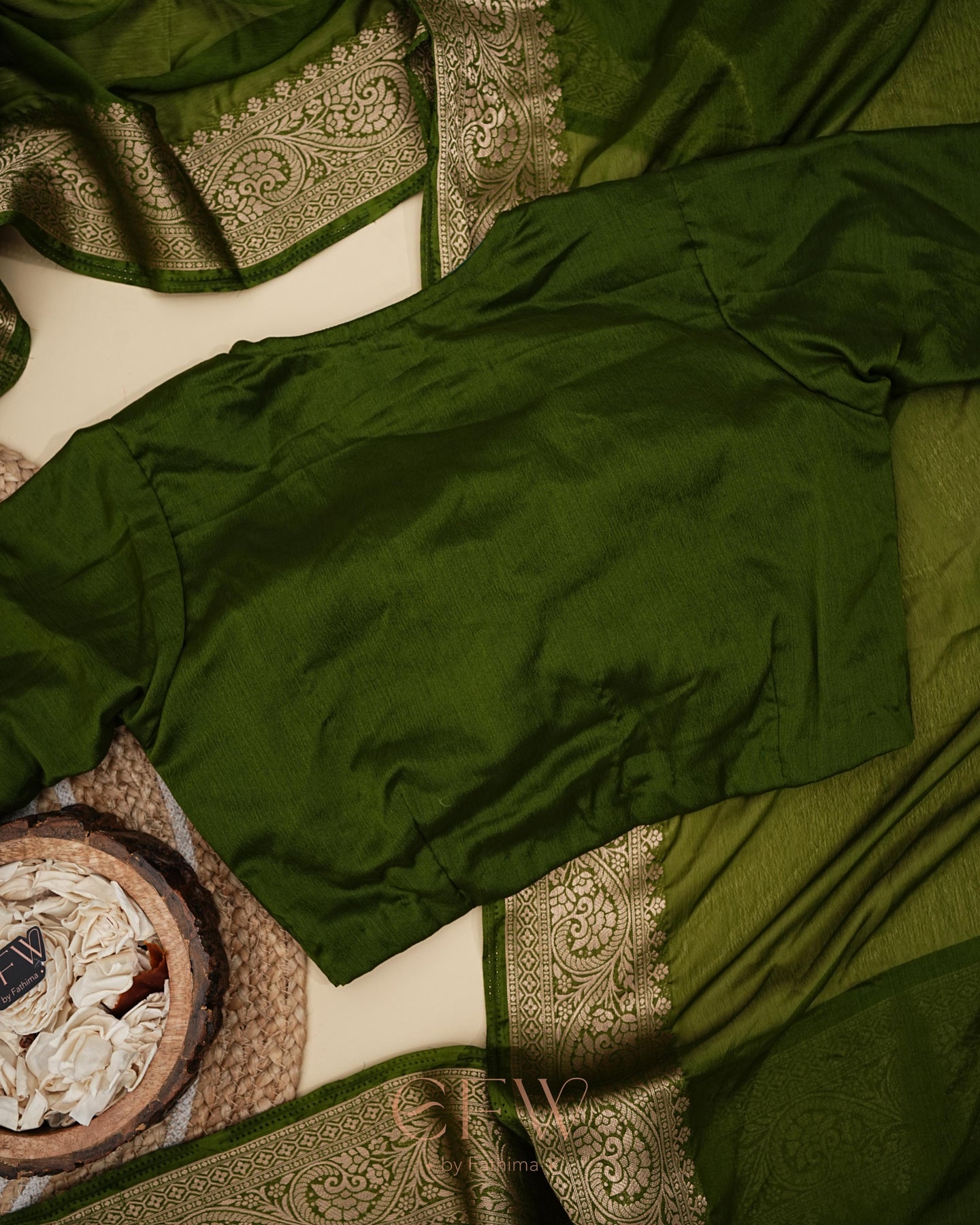 Warning: Prepare for endless stares and compliments in this dreamy brown saree! Soft chinon silk that feels like a whisper and drapes like a dream, complete with a gorgeous border and a Banarasi silk blouse for that extra touch of elegance.