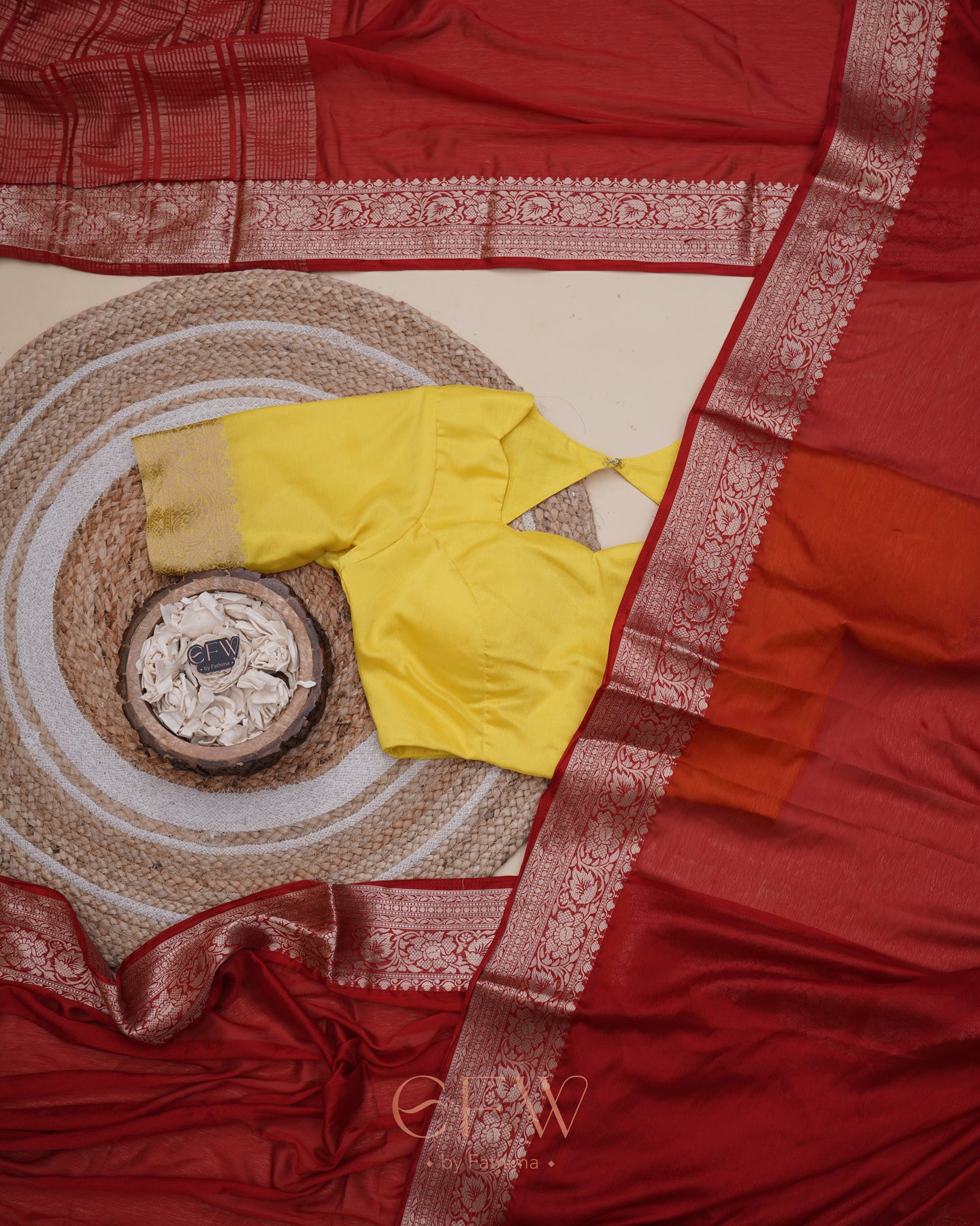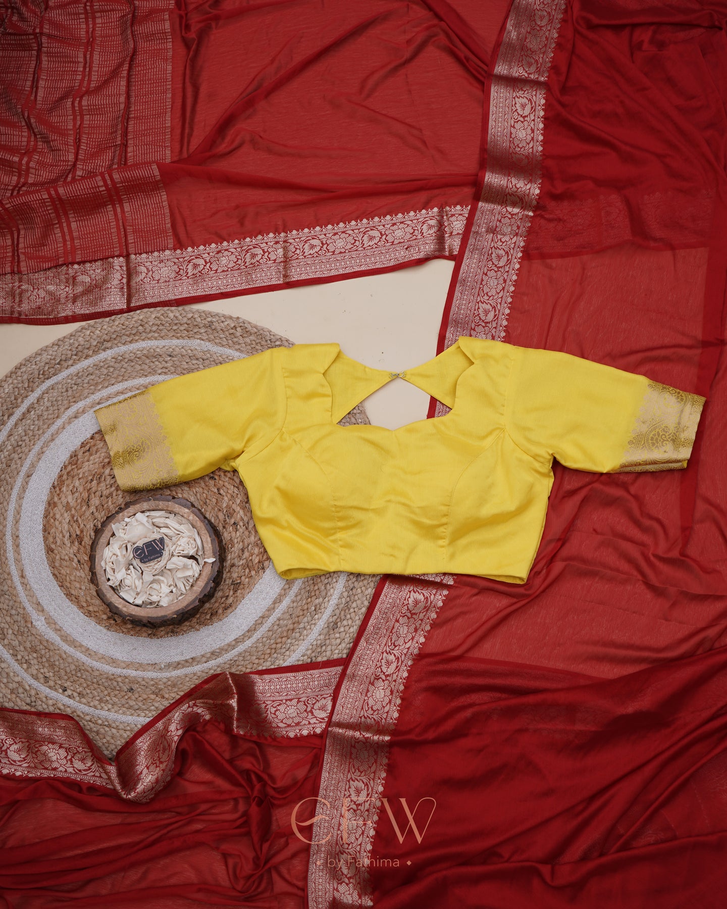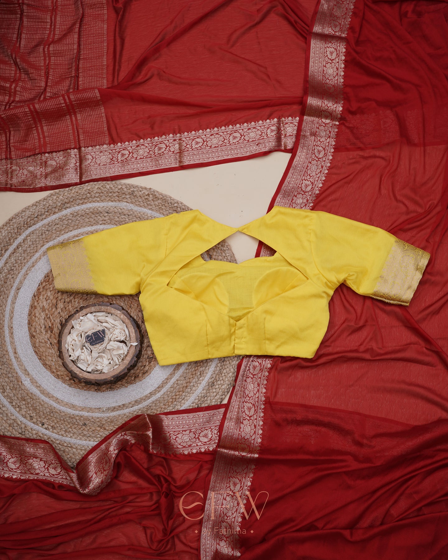 Warning: Prepare for endless stares and compliments in this dreamy brown saree! Soft chinon silk that feels like a whisper and drapes like a dream, complete with a gorgeous border and a Banarasi silk blouse for that extra touch of elegance.