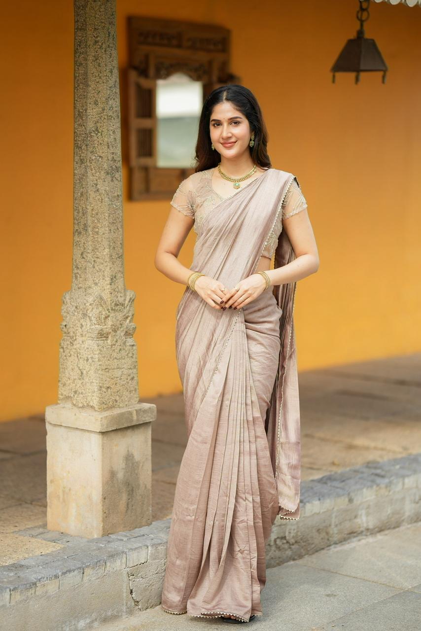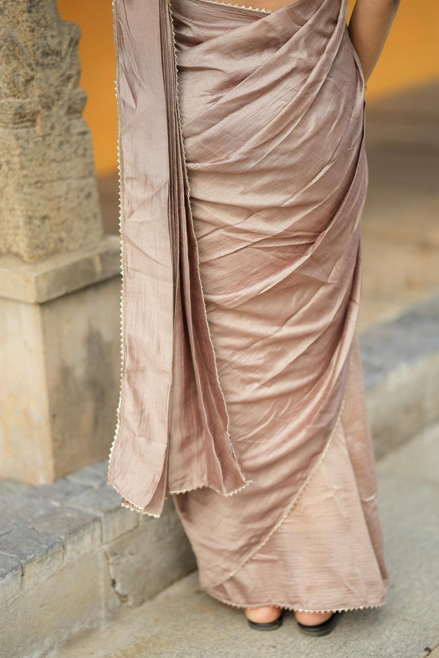 Finished with a refined scalloped border along the saree edge, Cocoa Mocha Luxe is perfect for elegant gatherings, festive evenings, and occasions where subtle sophistication speaks the loudest.