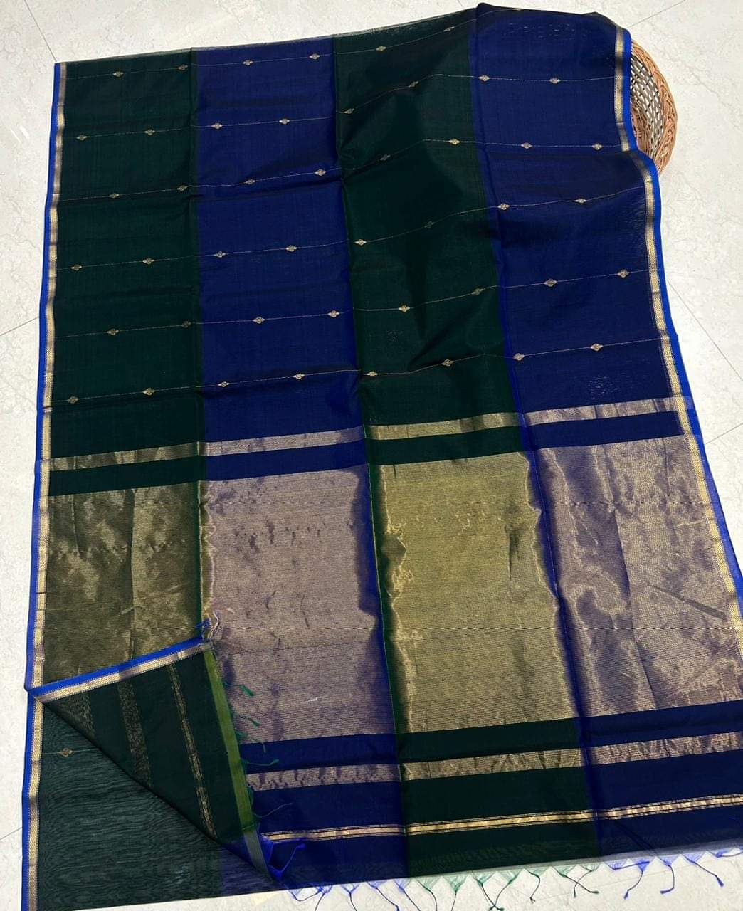 Experience the luxury of Pure Maheshwari handloom silk with AADHURI. The linear dual shade design adds a touch of elegance to this borderless beauty, while the rich golden pallu adds a touch of opulence. Elevate your style with this expertly crafted silk saree.