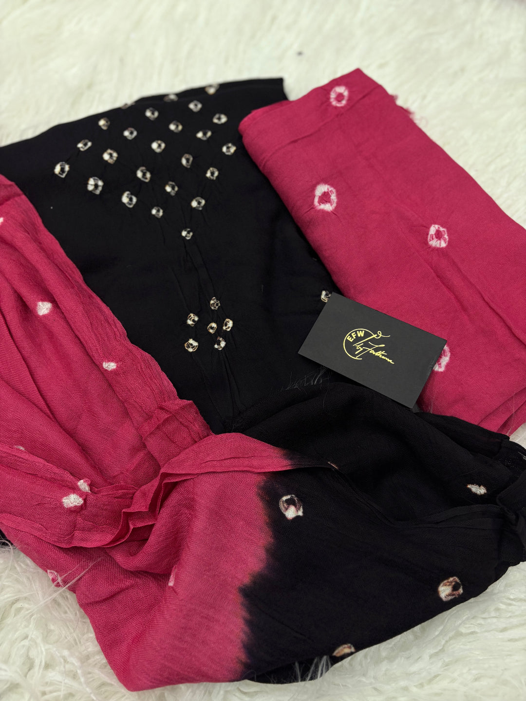 For All Bandhani Lovers! We’ve got something special for you—our pure Bandhani cotton suit with a soft rayon blend that’s as luxurious as it is comfortable!