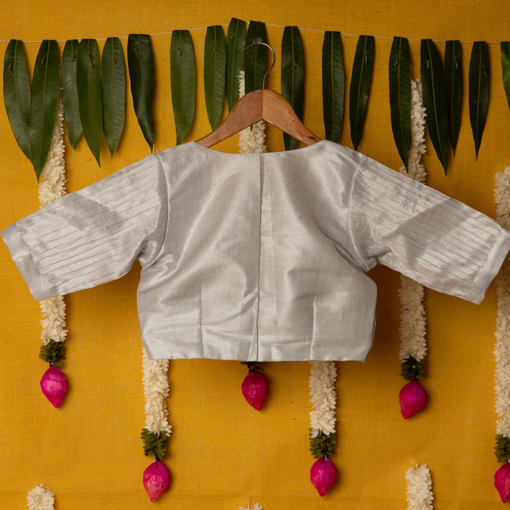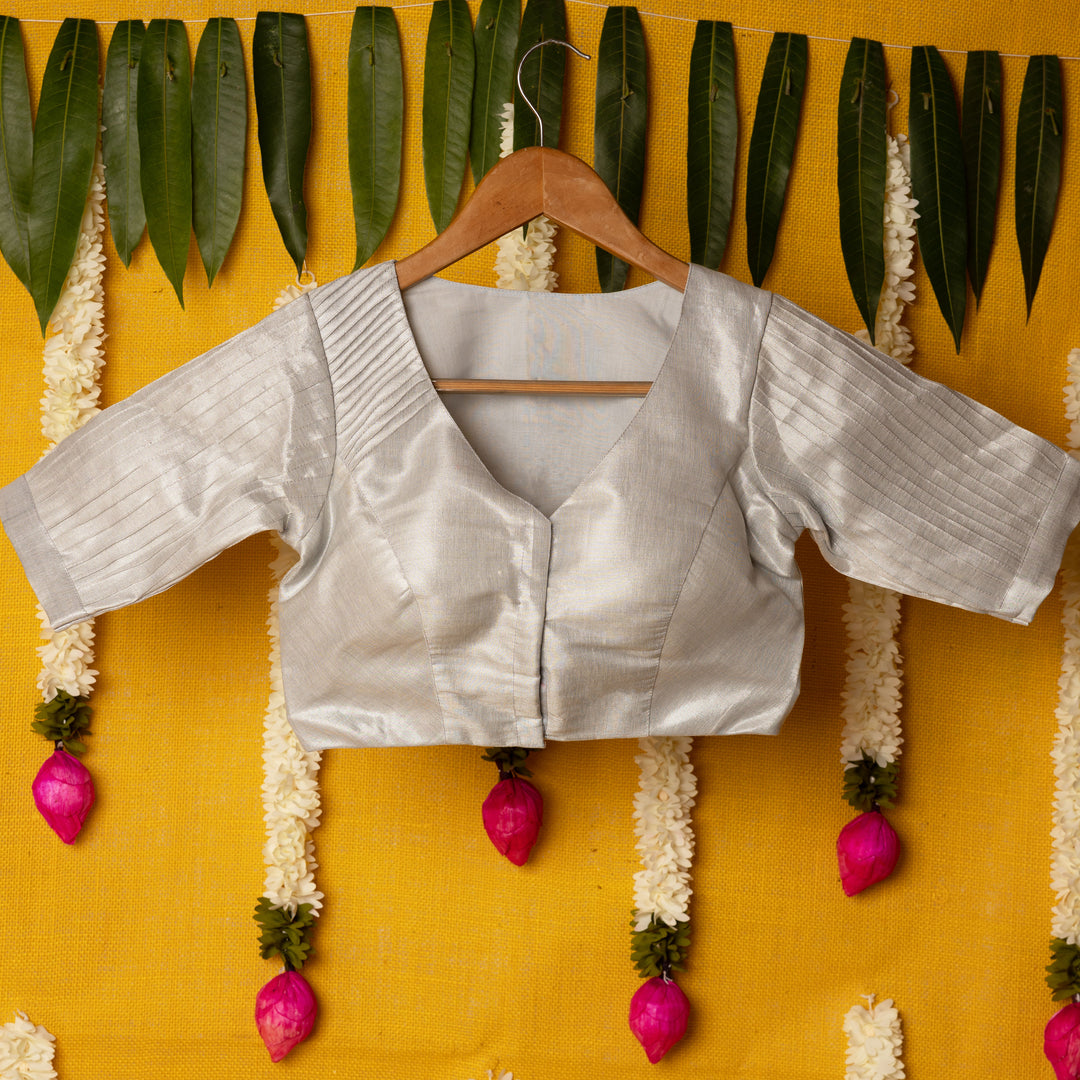 Tailored to perfection using the finest semi raw silk fabrics. Pick them off the rack or mix & match for your signature style. Less is more in this simple and stunning puff sleeves blouse set to become your go-to saree accent.