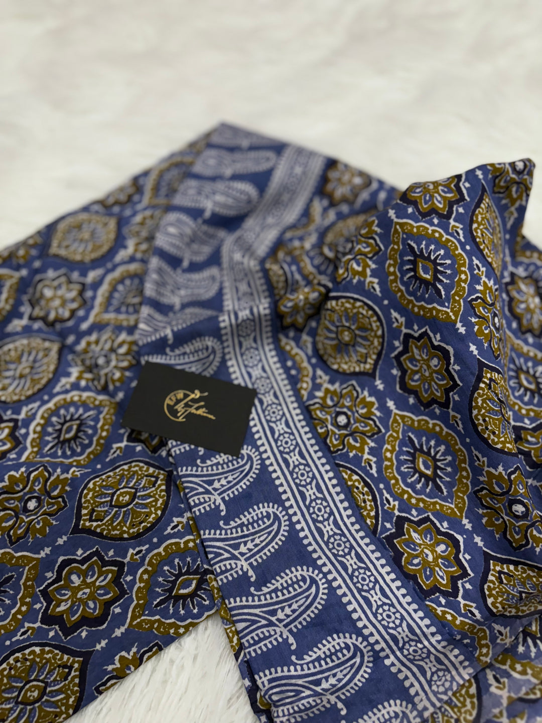 Introducing our soft and simple saree with beautiful handblock prints, perfect for all-day wear and office chic. Comes with a running blouse to keep your style effortless and refined. Comfort meets elegance, all in one!