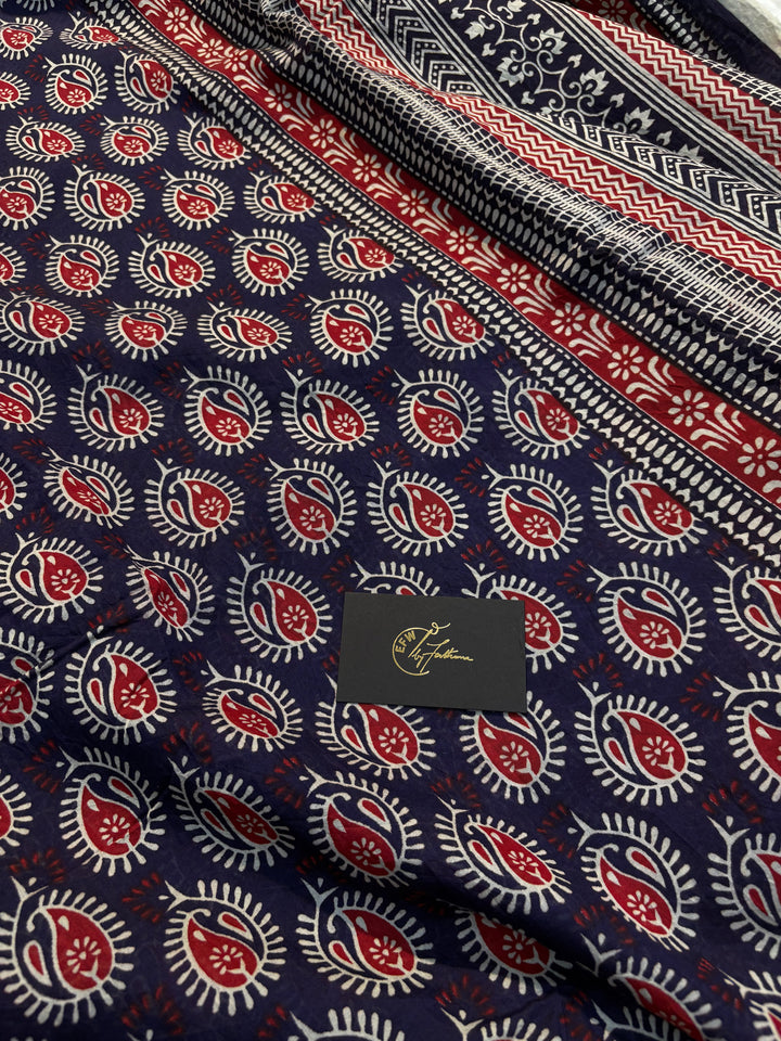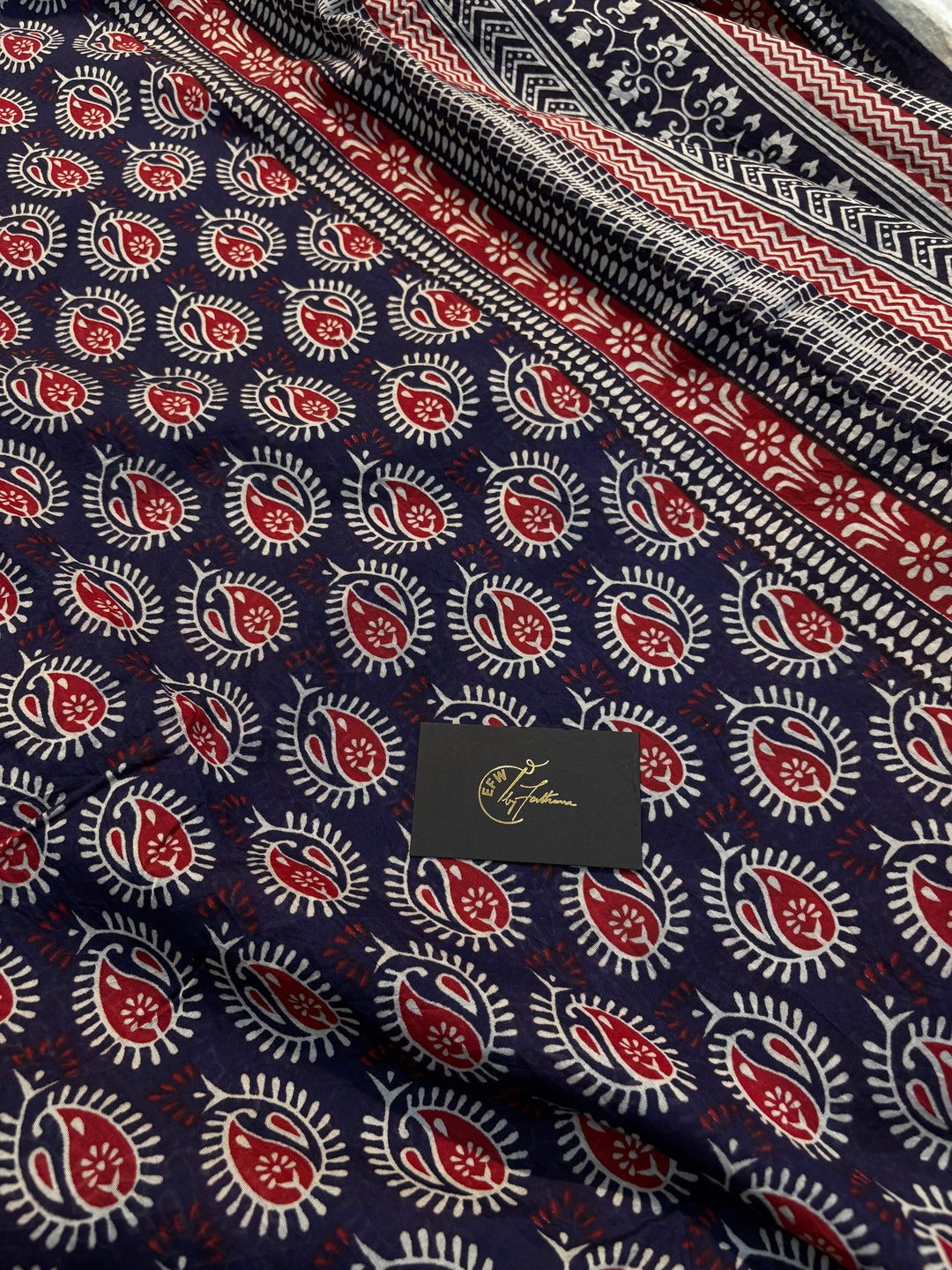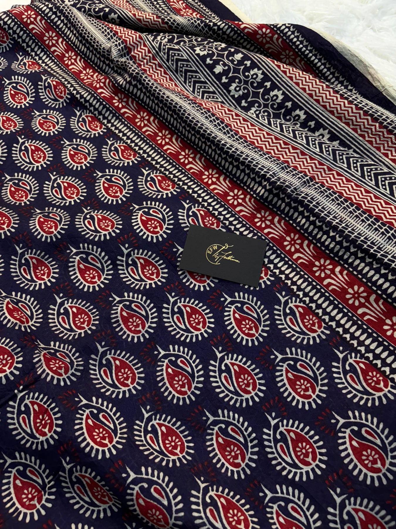 Introducing our soft and simple saree with beautiful handblock prints, perfect for all-day wear and office chic. Comes with a running blouse to keep your style effortless and refined. Comfort meets elegance, all in one!