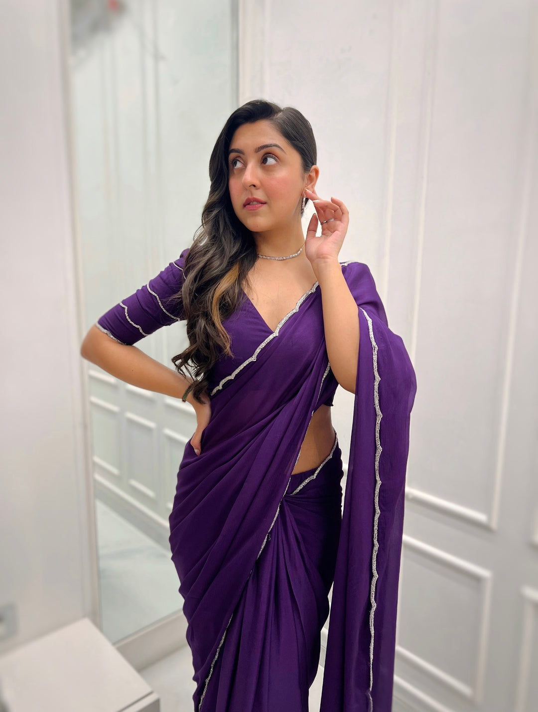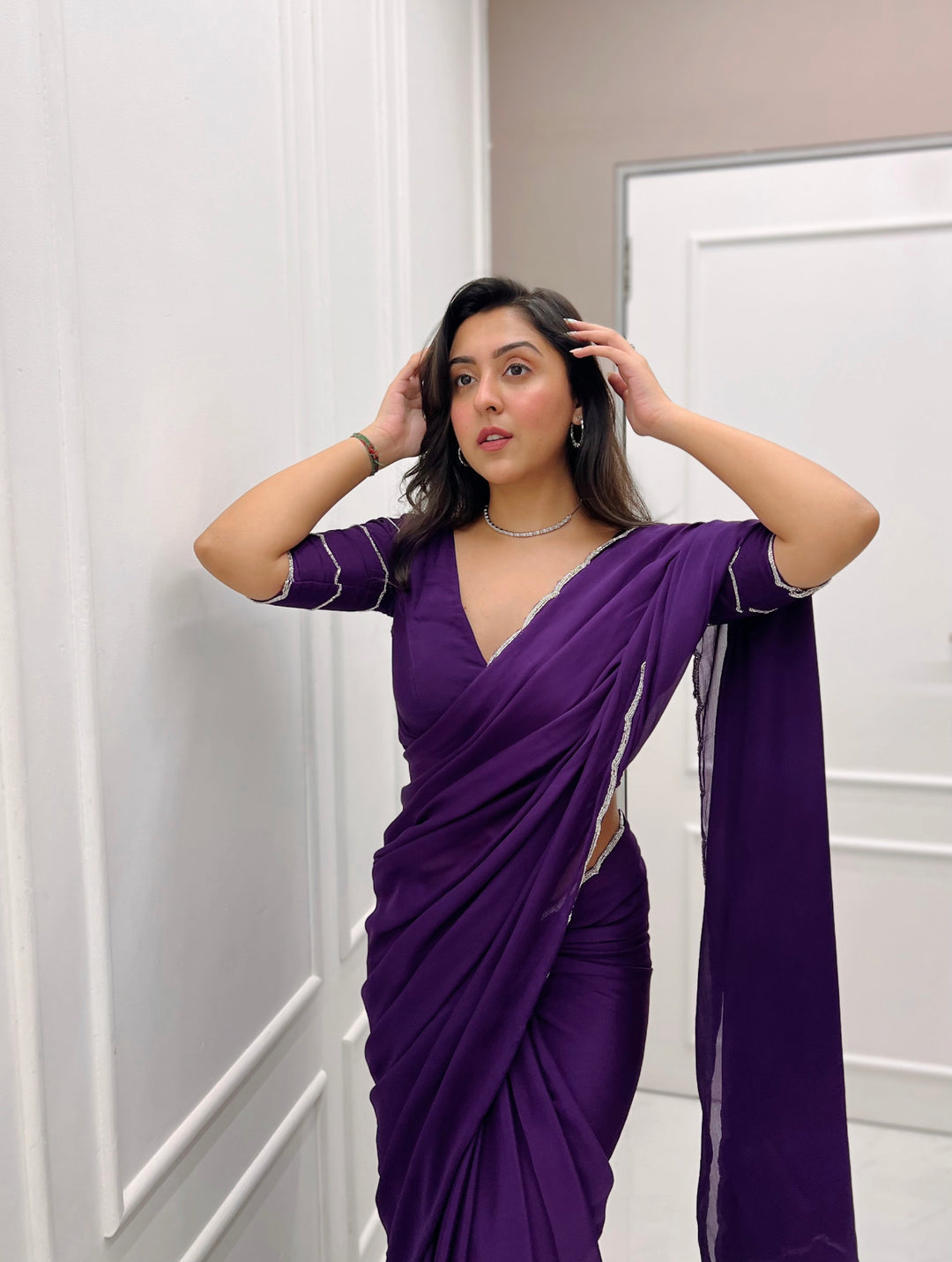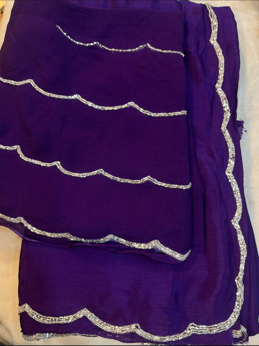Pure chinon silk saree with khatli handwork border comes with work blouse