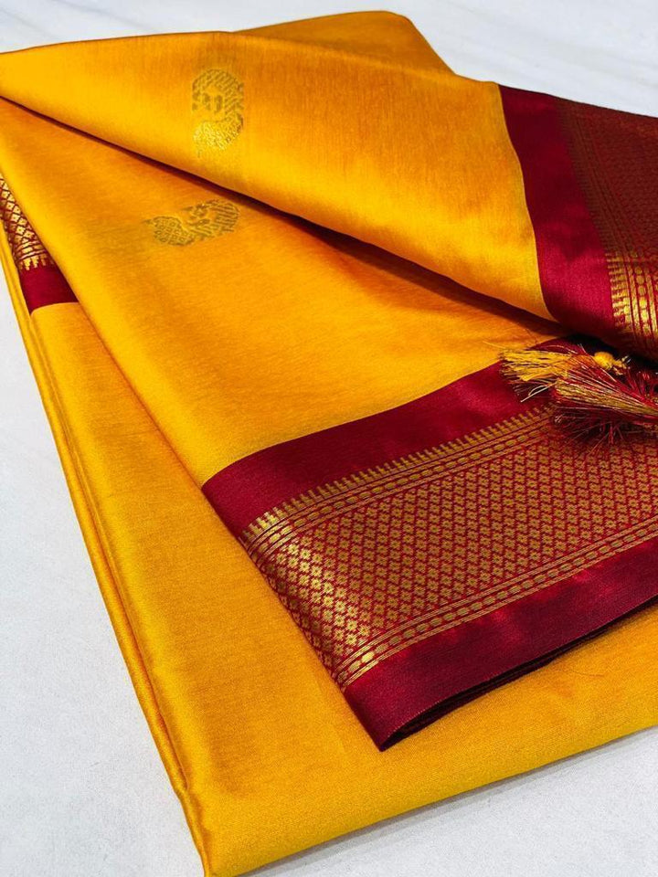 This exclusive rich cotton silk comes with a gold weaving border.