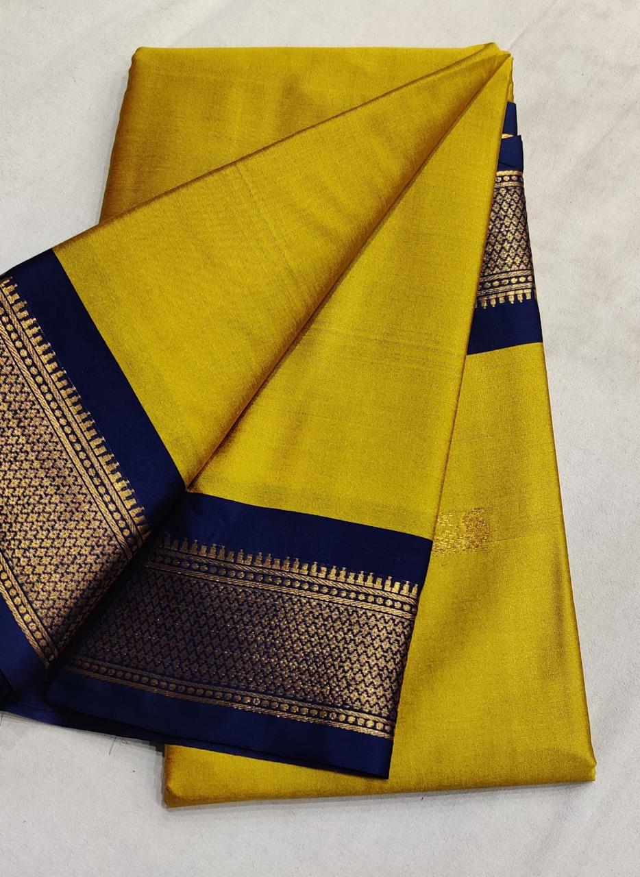 This exclusive rich cotton silk comes with a gold weaving border.