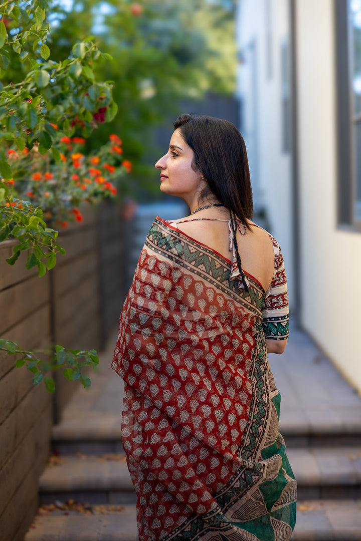 PS : There will be variation in the blouse design as its purely handblocked (Each saree blouse design will be different)