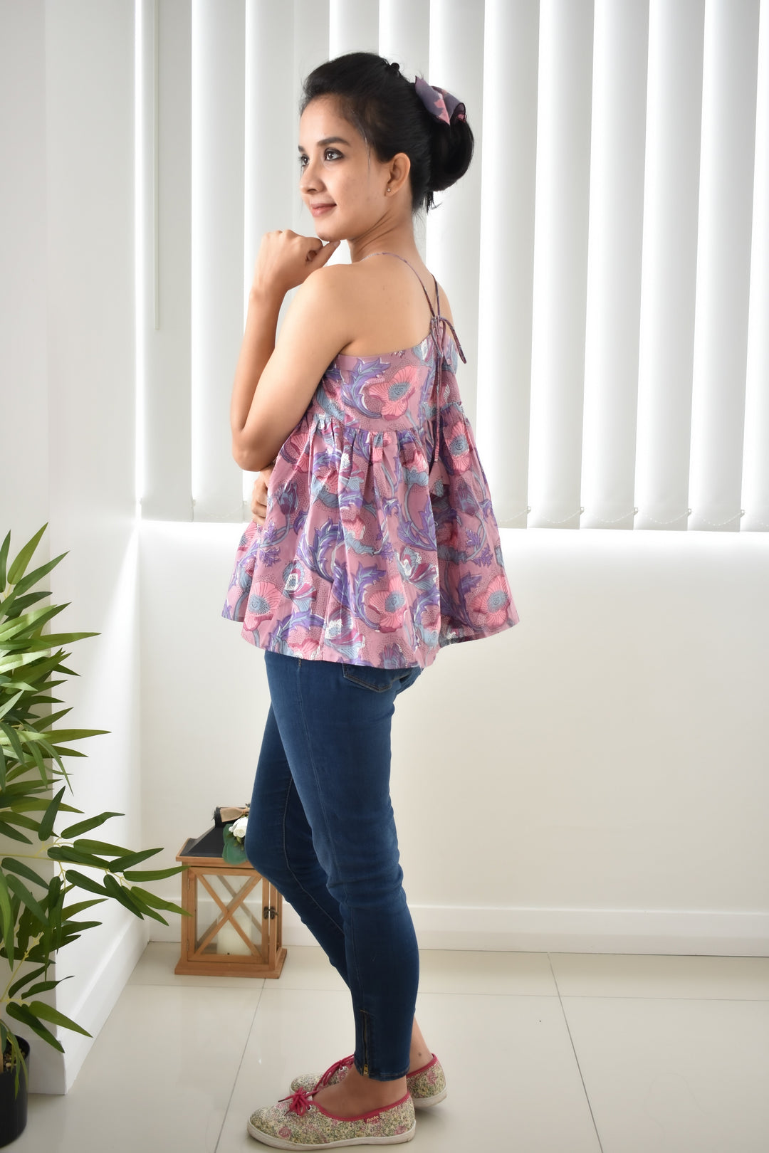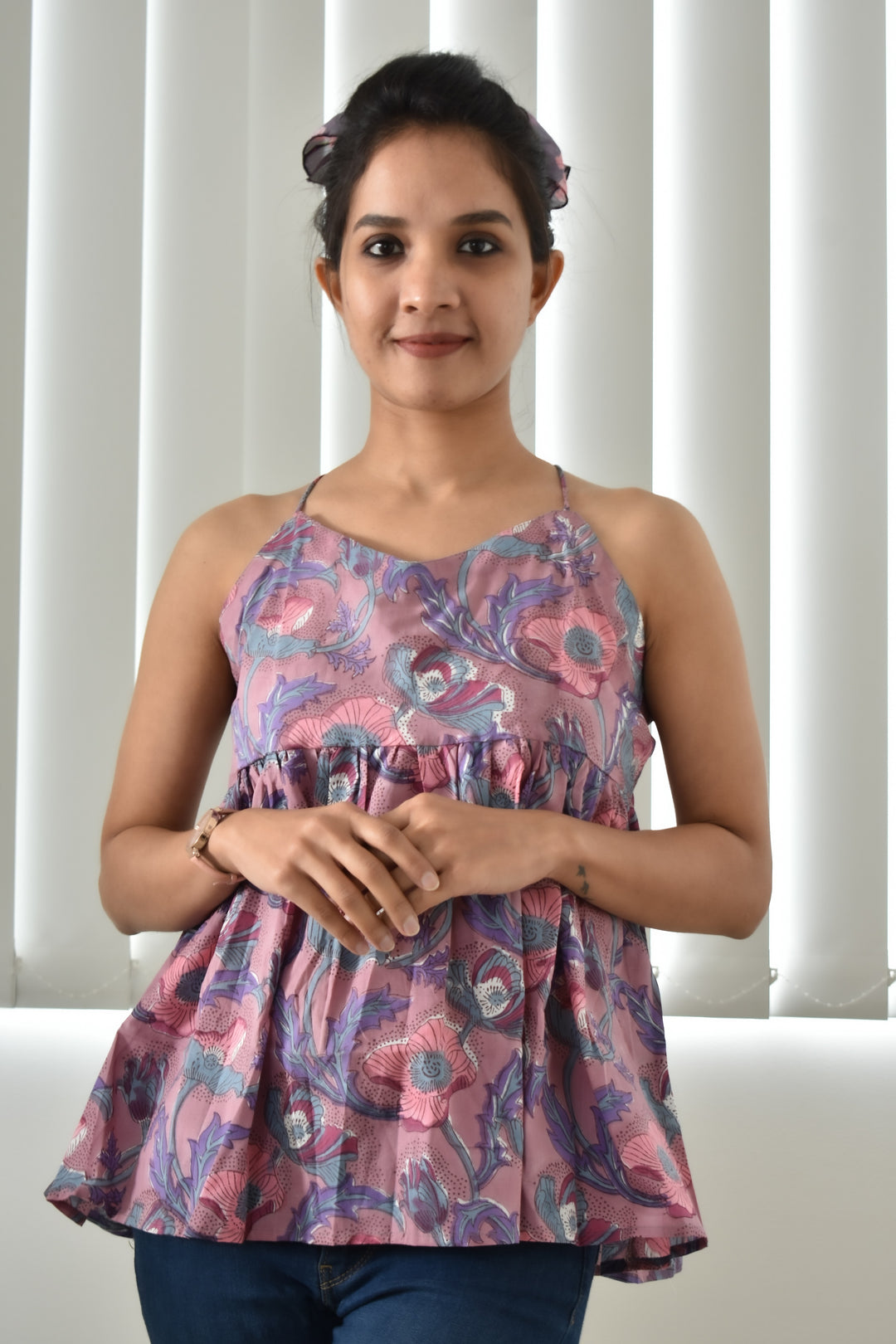Vivid colors in a pretty prints, this flattering feminine top with delicate straps will make you feel and look your absolute best.