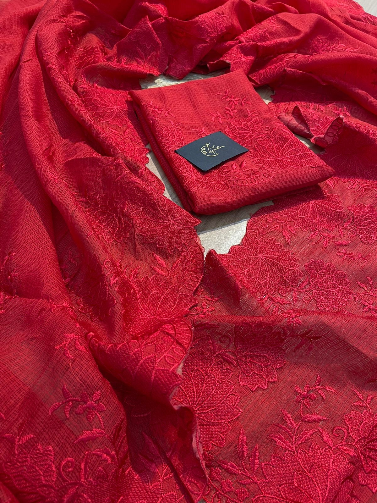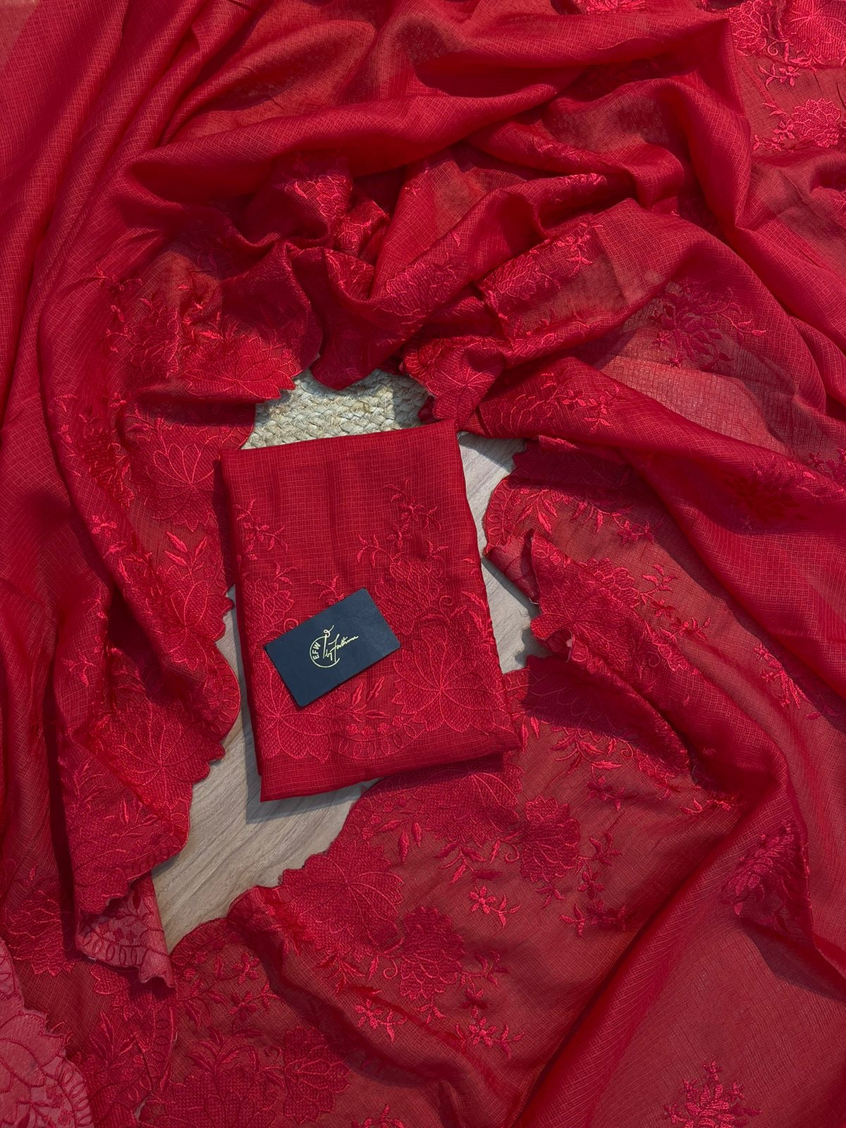 Presenting our stunning Kota checked saree, adorned with intricate self-embroidered work.