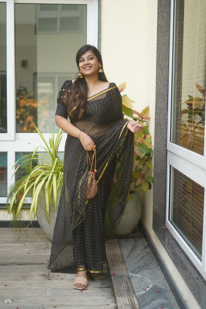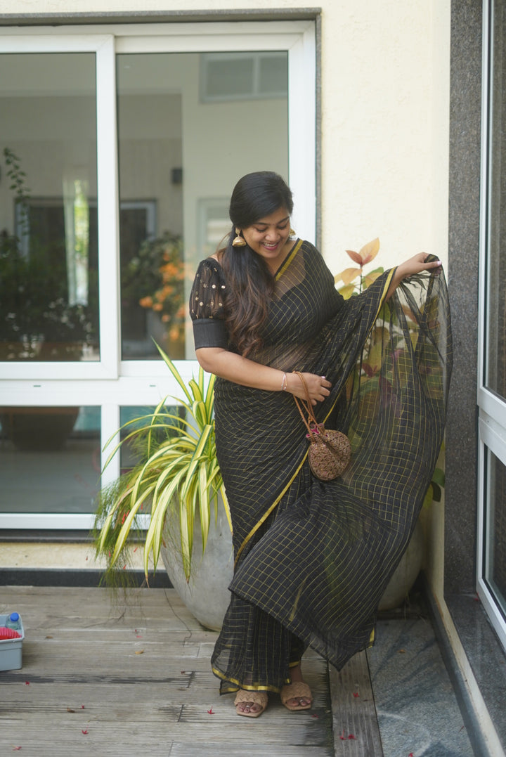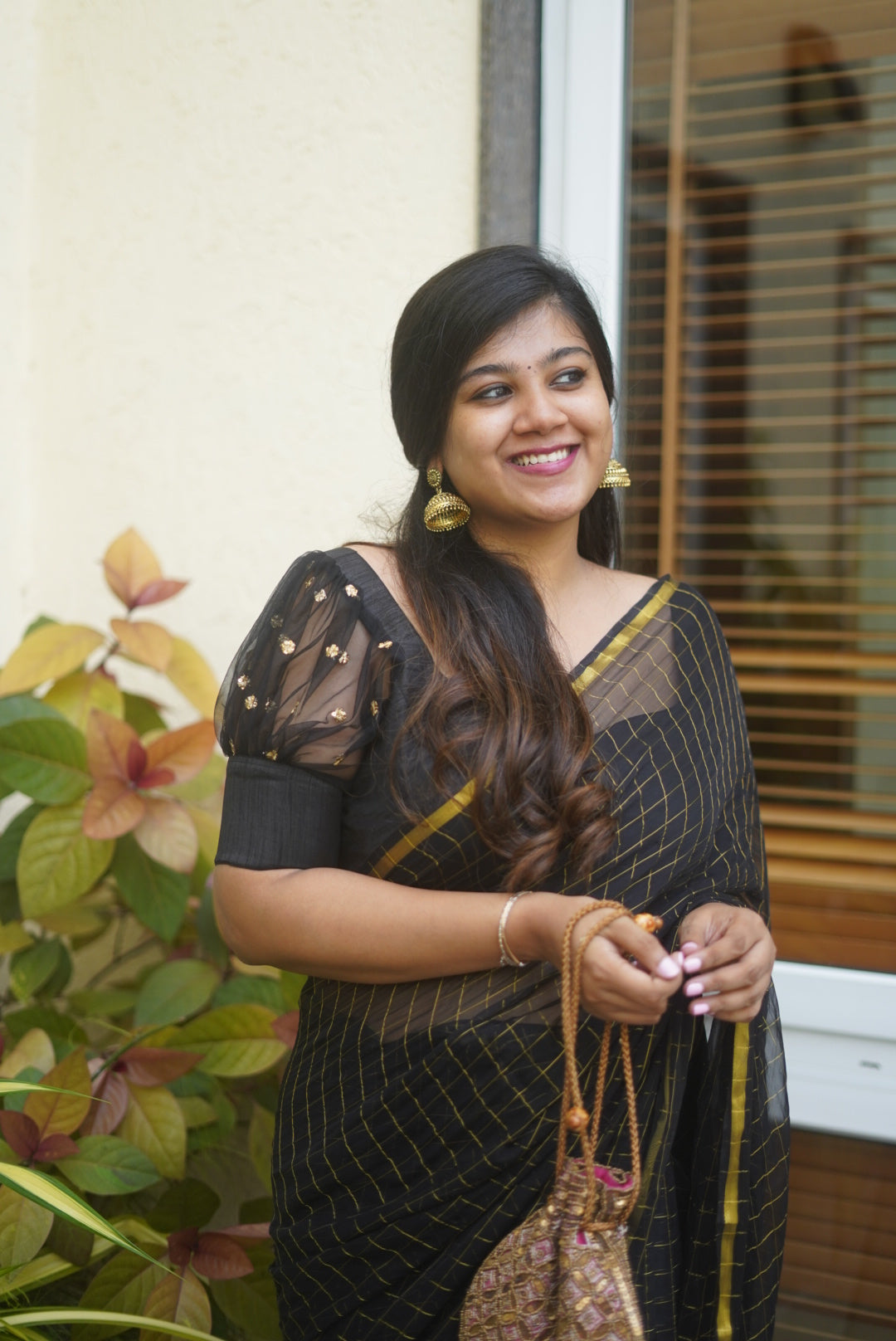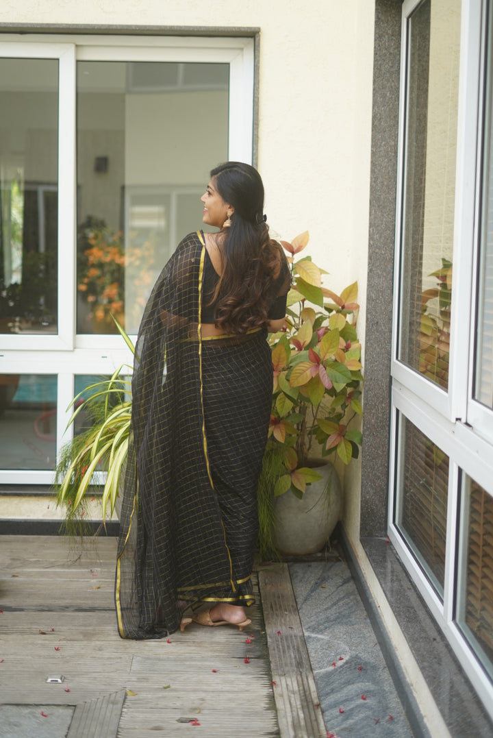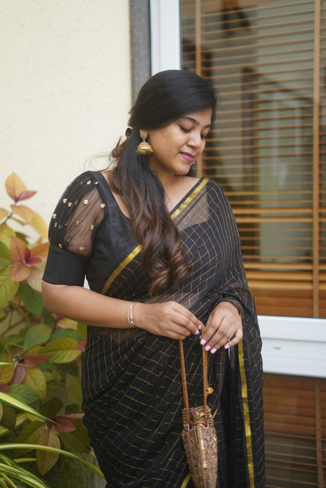 SAKHI-BLACK (SAREE&NET PUFF BLOUSE)