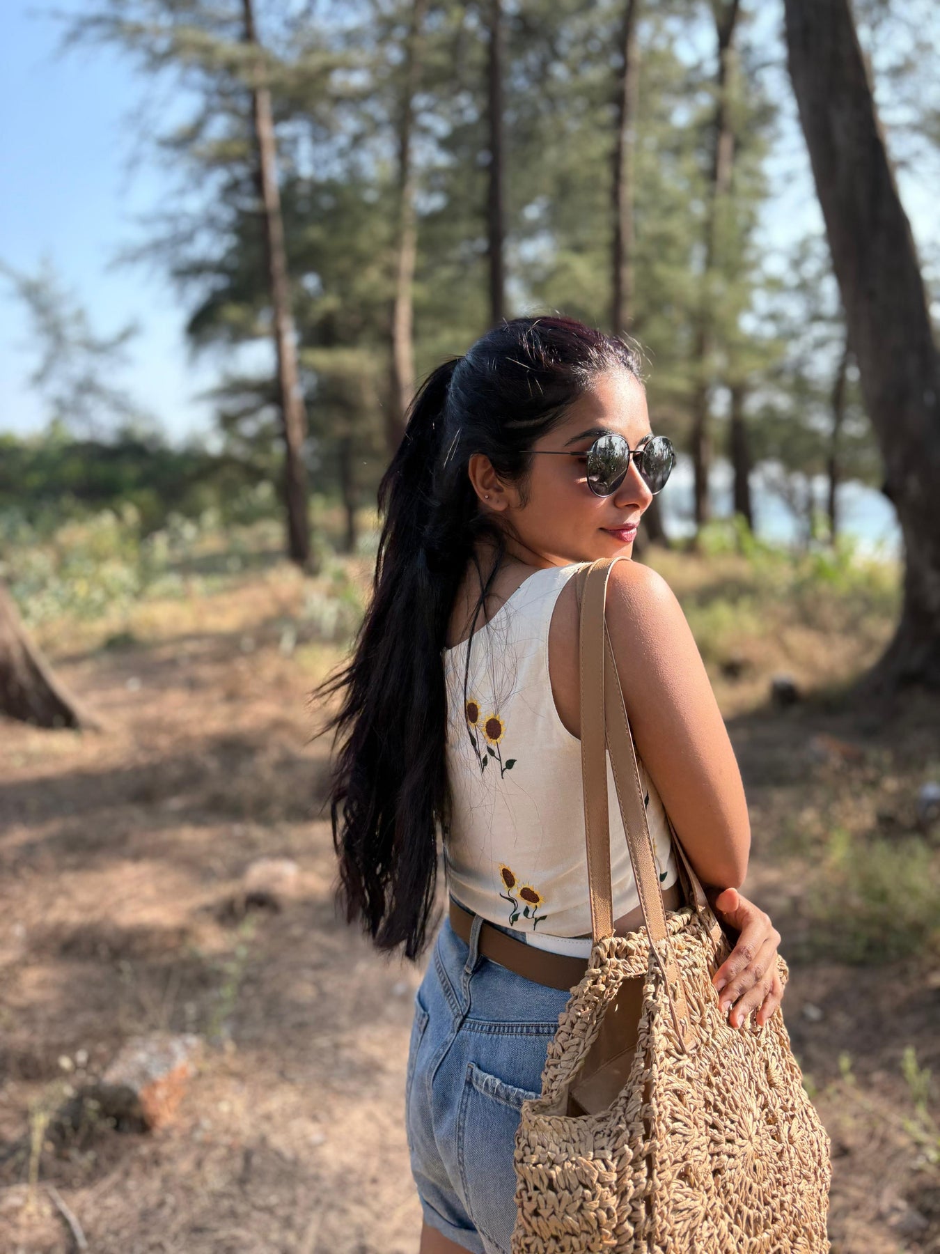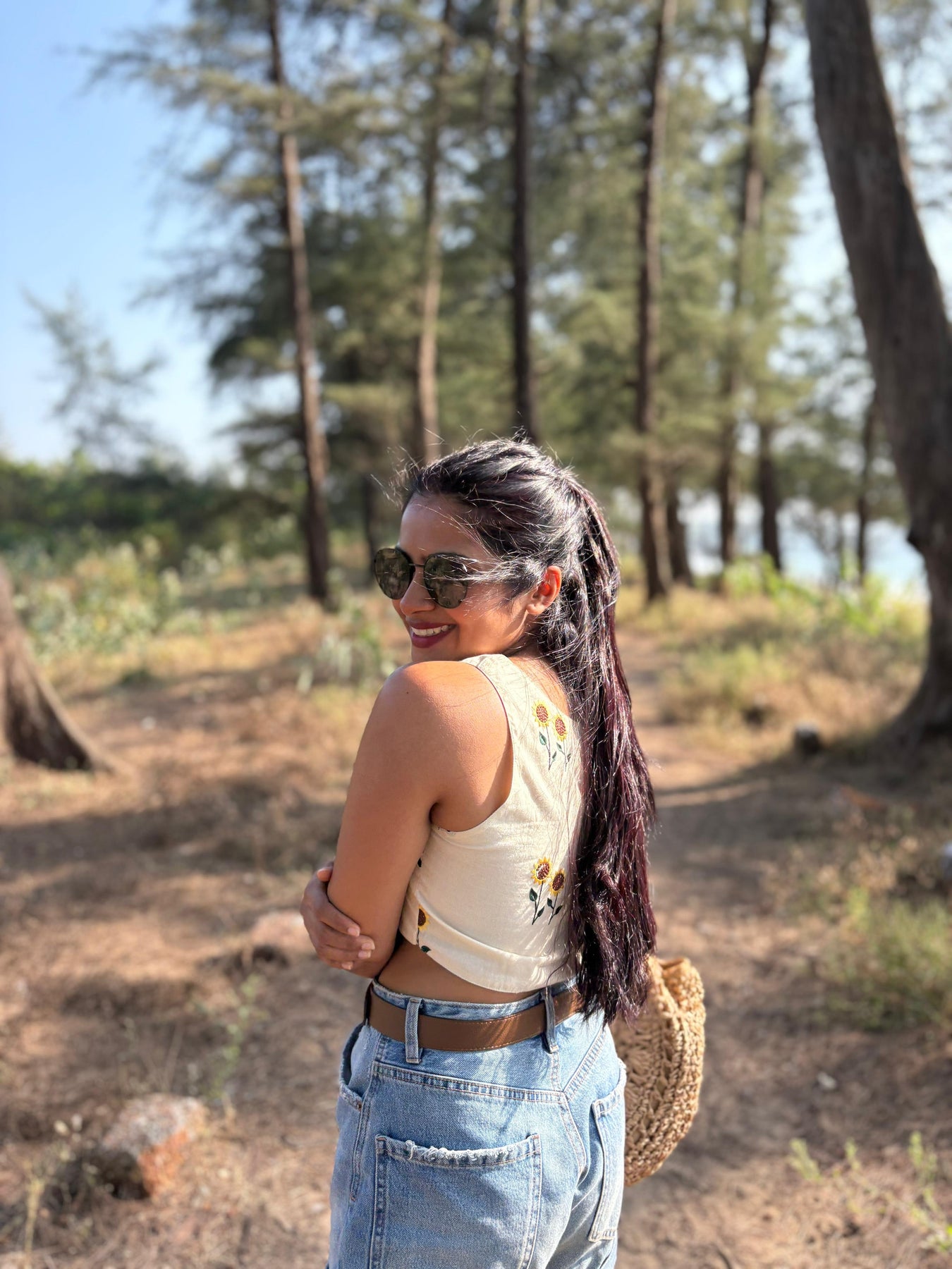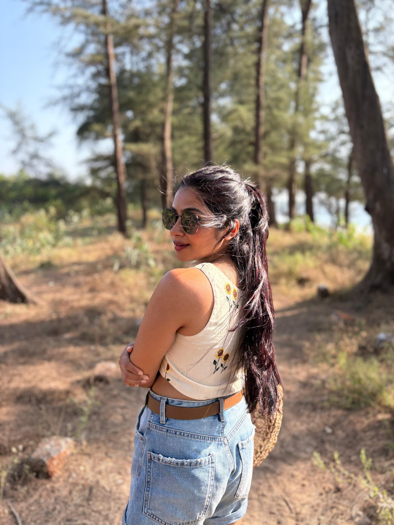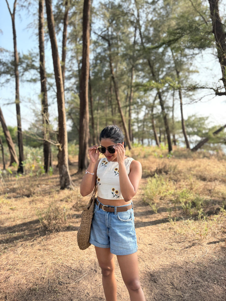 A simple crop top in our pure cotton, adorned with dazzling sunflower 🌻 embroidery—effortlessly stylish and oh-so-comfy! Pair it with your denim trousers for a chic casual look or a cute midi skirt for that breezy summer vibe.